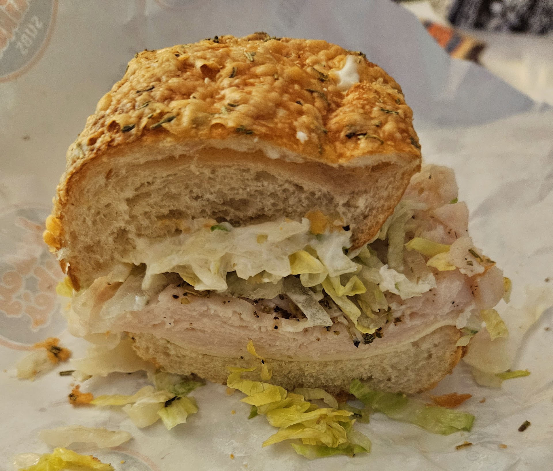 Went there to get our usual, a number 7 (a mini turkey), and a number 6 (a mini roast beef), but for the same price I could switch my roast beef to a number 9. It has turkey, beef, AND bacon! And it has over 200 more calories... for the SAME PRICE!! I was so happy and i got my favorite rosemary bread so I feel like I got more for my money and more calories which I needed as I swam hard today for over an hour and needed more calories. Takota was the guy who we paid and I was thrilled to get such a good deal for two sandwiches. I think they were $5.85 each plus tax. I left him a small tip and was there and home in like ten minutes. My sandwich was so delicious I had added onions and oregano and had it "Mike's way" plus added mayonnaise. So yummy ate the entire thing. Great place. Usually no line but today 6 people in front of me but they work so efficiently that I was only waiting maybe 5 minutes before he started making my sandwiches. Mom loved...