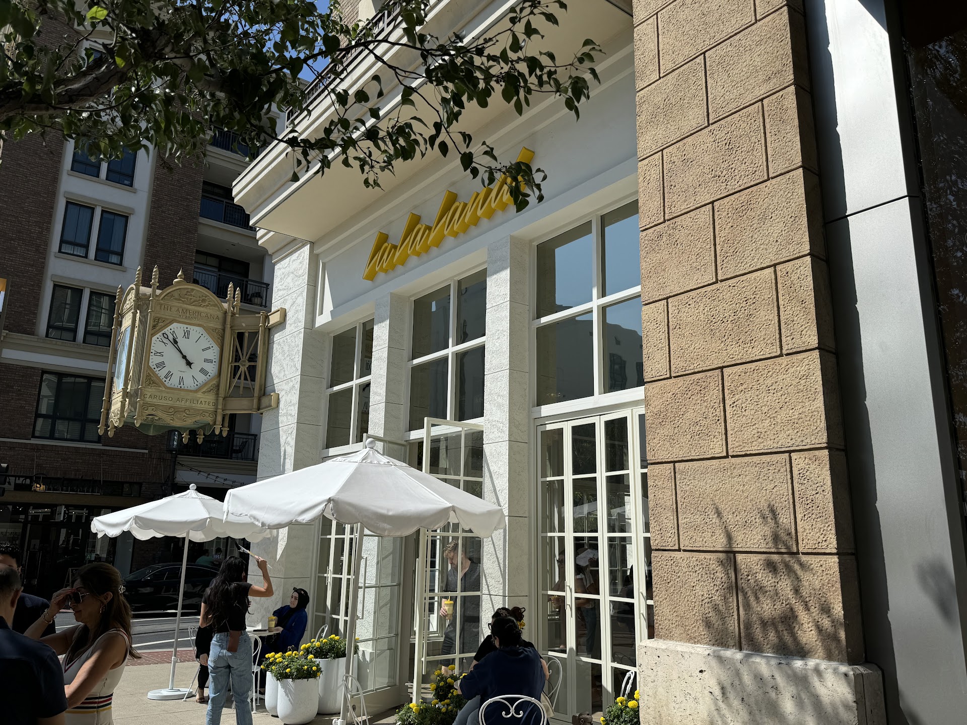 Regarding seating, there is seating indoor and outdoor, it is self service so you’ll have to find your own tables. Even while it was as crowded as it was when we went, the tables were definitely rotating indoors so I’d imagine if you waited then something would open up. Otherwise, the outdoor seating immediately outside of the place had available seats so if you wanted to sit right outside then you’re walking out and sitting down without hunting for a seat. Curveball, this is at The Americana so there is other seating as well, we were thinking we’d go to the grassy area near the fountain and sit there but on our way we saw “general americana seating” which was calling our names so we pivoted and sat there to have our respective toasts.