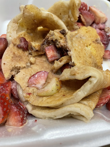 Ā Ā Ā Read moreHusband and I went in for a small treat when I saw the big Crepe sign. I got excited and ordered one, come to find out out they didnāt know how to make it properly because it was this thick glob, I appreciate that the lady rushed to make the crepe mix but honestly if you donāt know how to make it itās ok to tell the customer that. Instead I got a super thick ācrepeā which defeats the purpose, they also were out of Nutella but that she would try to scrape what was left which I was told after they were making it. They seemed so stressed making it that I felt bad for ordering one and even apologized to them. Then she tells me what ice cream do I want and I said no ice cream and she said she was going charge me for it so I might as well get it. Well by the time I got home the ice cream made the thick crepe all soggy. Which is why I never order ice cream with mine. Anyway long story short very disappointed. My husband got the pico de gallo which was mixed fruit with chamoy and chile and the fruit was warm which Iām pretty sure isnāt the way it should be. The only thing that was good was the agua...
