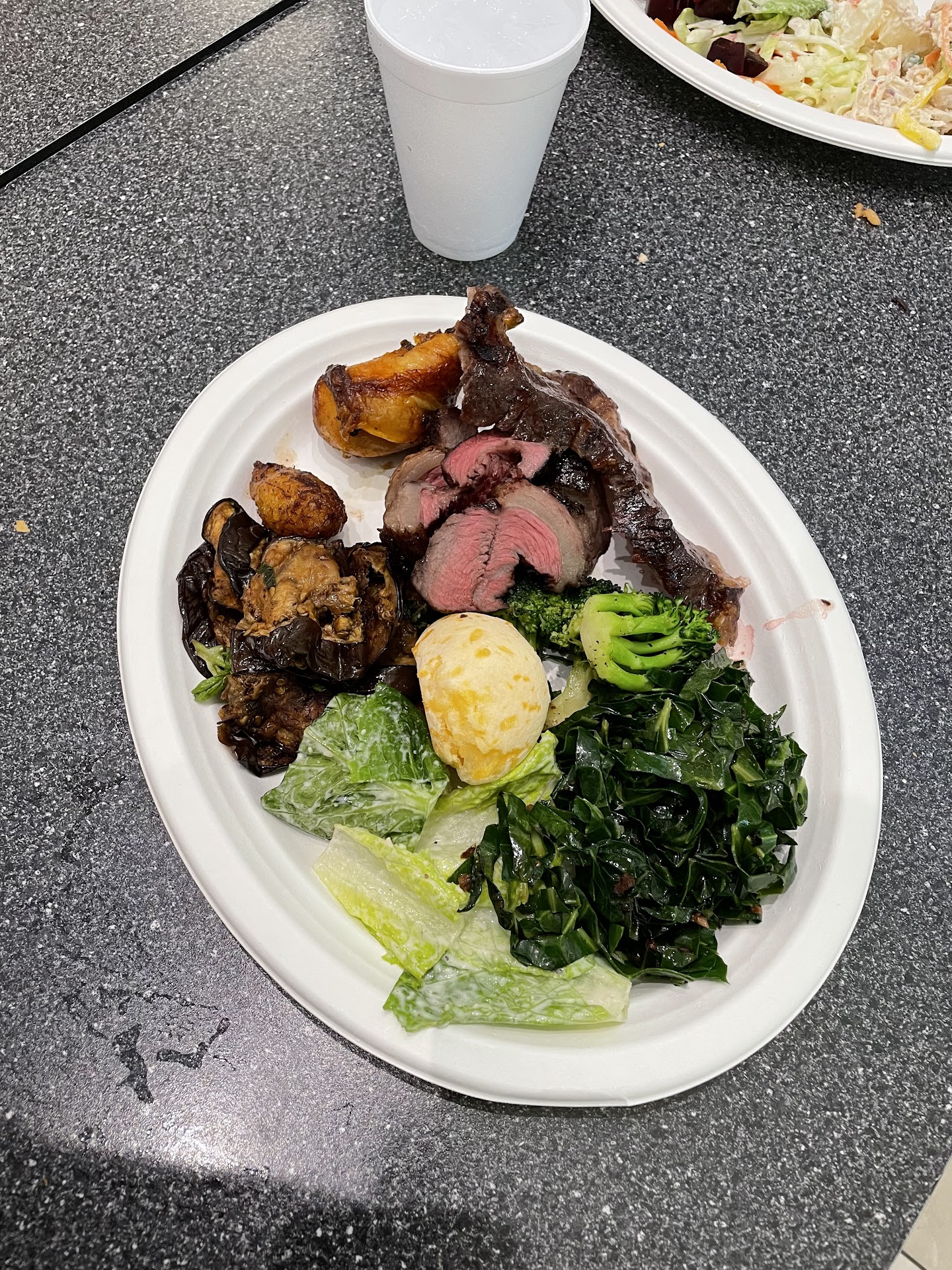 First, you can pick out items from the salad bar and put them into a clear plastic container. For myself, I had the Farfalle pesto pasta, the Brazilian rice, and a variety of vegetables. After that, I moved on to the meats, all of which had been roasted ; I had the sirloin, the garlic chicken, and sausages. My conclusion is that La Vaca is severely underrated; when I ate their food, I couldn't forget how delicious they were.