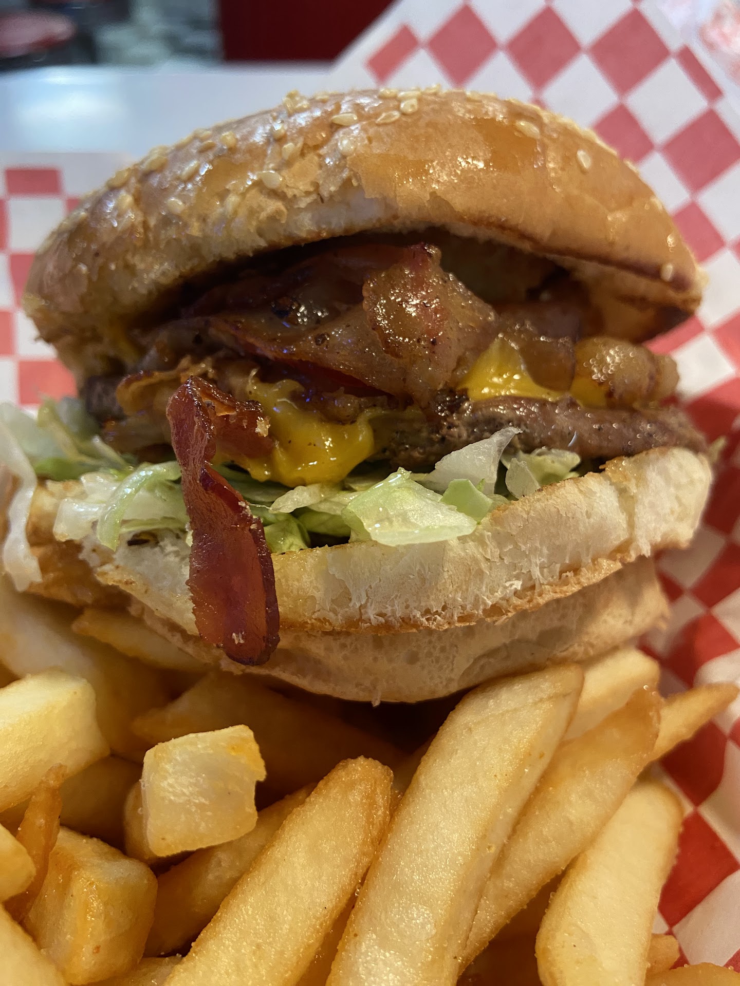 Read moreHere’s the thing the food here is pretty dang good, but the service left me feeling like I’d rather spend my money elsewhere in the future. We arrived at about 745pm after a very long day dealing with a family emergency. The location closes at 10pm so we felt we had ample time to sit and enjoy our meal inside. I had been here before, but atleast a decade ago so I can’t say if the awful service is typical, but it was enough to have me thinking twice about returning. When we walked inside the location is small. There are some booths and one long table. We were not greeted and while there were three employees working that we saw no one said anything, looked up then kept going about their business. The girl who I assumed would be running the counter ignored us for a good four to five minutes id sat as she worked the drive thru and other things. I would have no issue with that I’d of just liked a be with you shortly etc . …which I will say finally came after to we stood there looking at her in dismay. Once she finally came over and asked for our order I started to tell her. I asked for a shake with my meal when she quickly and rudely said I’m not making more shakes tonight. Which i get if it was super close to closing etc, but why do you offer shakes if you’re refusing service for items you sell hours before you close? We were starving after a long day so I told her fountain drink was my only option apparently. My son ordered his meal and we were told it would be brought out. We did not have to wait too long as there was only one other table eating. This employees tone just set off such a negative vibe for me. Have some table manners, professionalism, courtesy..i dont know act like you care that you work in customer service. That goes a long way and it would make it easier to understand what might be going on . Not just I’m not making those anymore with an attitude was just rude. I’ll end this with the food was great. Burger had good flavor, toppings fresh and fries crispy but not over done. Prices were a bit high so you think service...