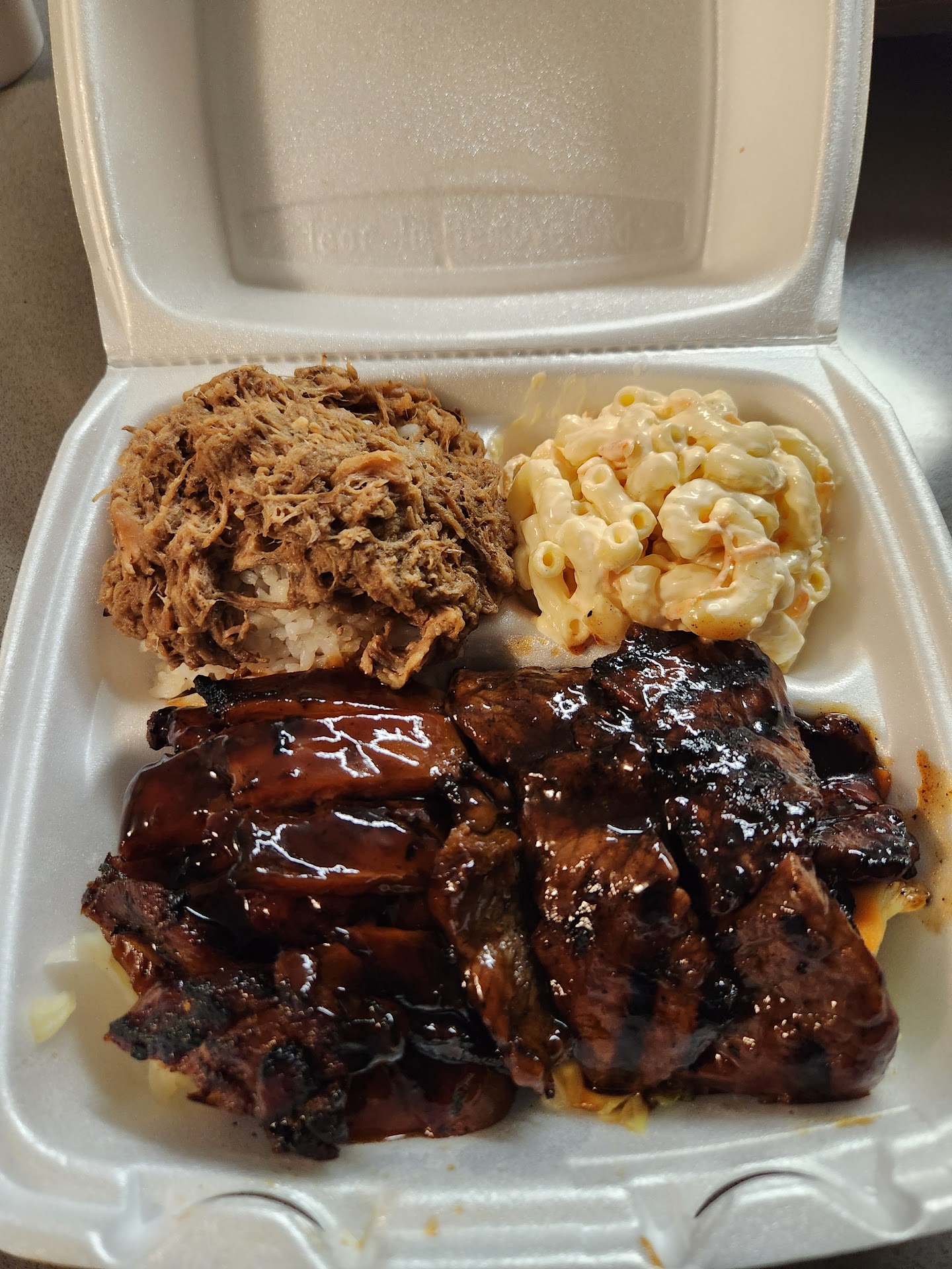 Read moreI've been trying a bunch of local Hawaiian BBQ spots in the area outside of Ono and I've stumbled across a few good ones, but this is not one of them. For starters, I ordered a very basic meal and it was absolutely drenched in salty teriyaki sauce. I had the Teriyaki chicken and BBQ beef, but I couldn't tell if the beef was actually BBQ due to it being drowned in the teriyaki sauce. Note to owners: serve the sauce on the side. The chicken was kind of tough and the beef was actually half decent, but overall nothing special. Compared to other places, they only gave me one scoop of white rice as opposed to 2 scoops. The mac salad was pretty bland too...it's like the one thing that could actually use more salt. I didn't even bother eating the veggies. The place was absolutely dead during lunch hour which should have been my first sign to run right back out the door but I bravely ventured in...knowing I'd likely regret that decision shortly thereafter. Go with your gut, or do what I did and brave the unknown. You'll never know if you don't try. To anybody reading this review, there is a place called T&Y Hawaiian BBQ just a couple minutes down the street. I'd highly urge anyone looking for a decent bite to go there instead, it was amazingly tasty compared to this place and I ordered the exact same meal. Won't be coming back personally, but go if you...