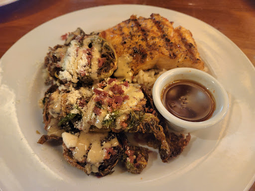 Read moreLet's start with the highlights. Or waitress was just wonderful. My fiancee has the seafood dinner: bruschetta was good, tomato tasted fresh, not too crusty bread and parmesan with a nice balsamic drizzle. The wedge salad was a 3/5, not bad, and the scallops for the main course were a bit salty but perfectly cooked and yummy. Wet both really enjoyed the French onion soup as well. Sweet potato fries were light and yummy
