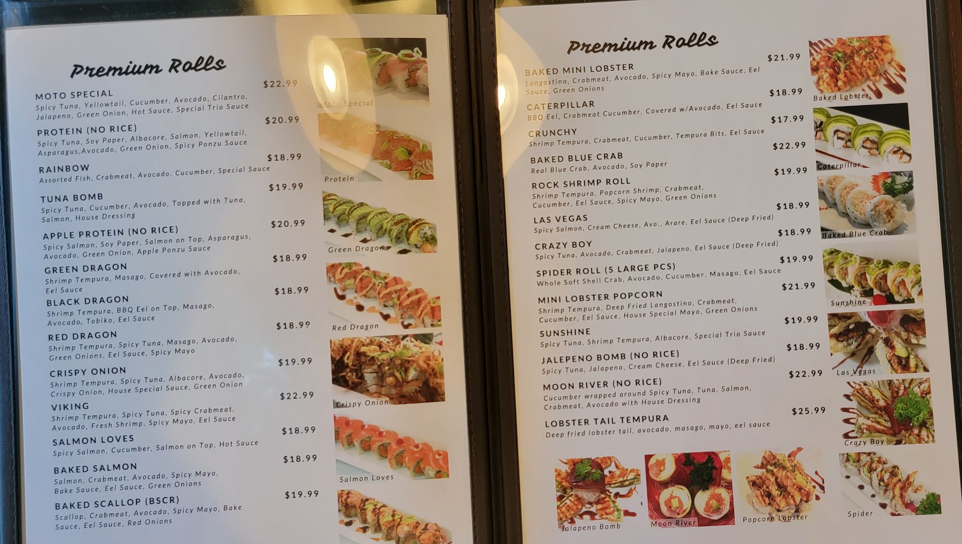 I started looking at the menu and it was really small. Then I notices the prices of the " Premium Rolls". They only offered 25 premium rolls and all of them were heavy jazzed up with sauses, which not a fan of. I like to taste the freshness of the fish. The service was on point but does not make it ok to charge Beverly Hill prices. The cheapest roll was a cucumber roll which was a premium roll at $18.99. There are half dozen great sushi restaurants within 1 mile away I know of that you can get you money's worth. I decided to stick with the regular simple rolls because only rolls on menu without heavily saused. The end of our dinner the bill was $170.00 with tip for 2 people. I did leave somewhat hungry. The simple rolls were pretty pricey.