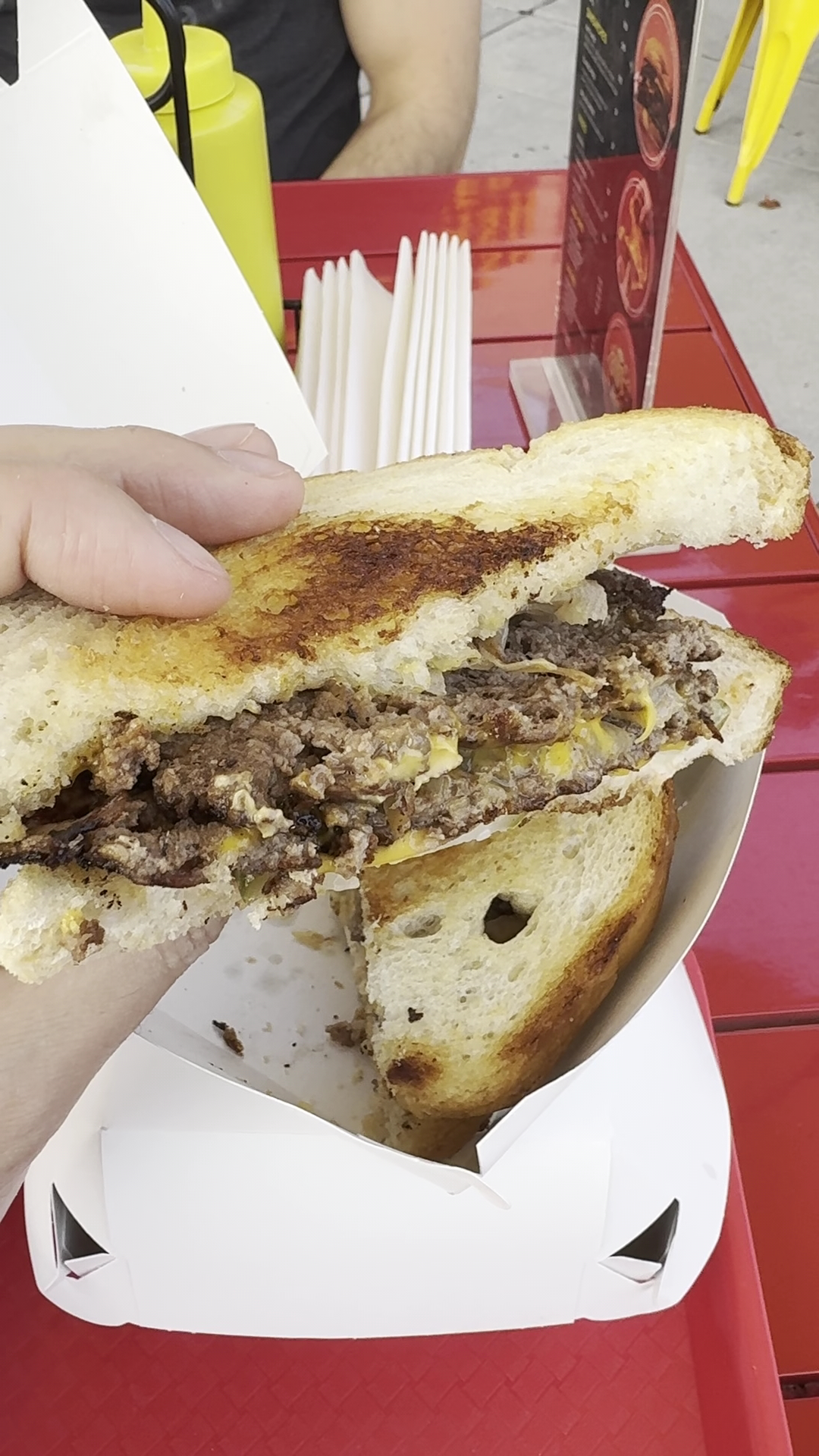 This was our first time here and we generally liked it and we plan to come back in the future. We had triple cheese burgers, patty melt, regular fries, OG fries and the cookies. Their best item was definitely the cheese burger. There was not much to address regarding the atmosphere which is why that is rated as 3 stars.