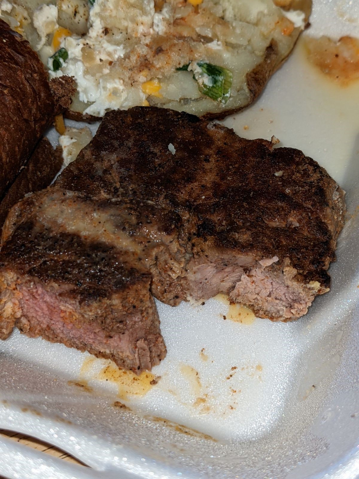 My friends didn't finish their food either but our statements about the steak was the same. It's a shame to pay such a high price for a steak and receive less than for it.