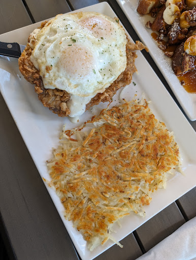 The decor and vibe are reminiscent of Snooze and was quite pleasant. Our server greeted us in a timely manor and was also very pleasant. The food took a long time to come out but was mostly very good.... the exception being my over easy eggs coming out more medium +.
