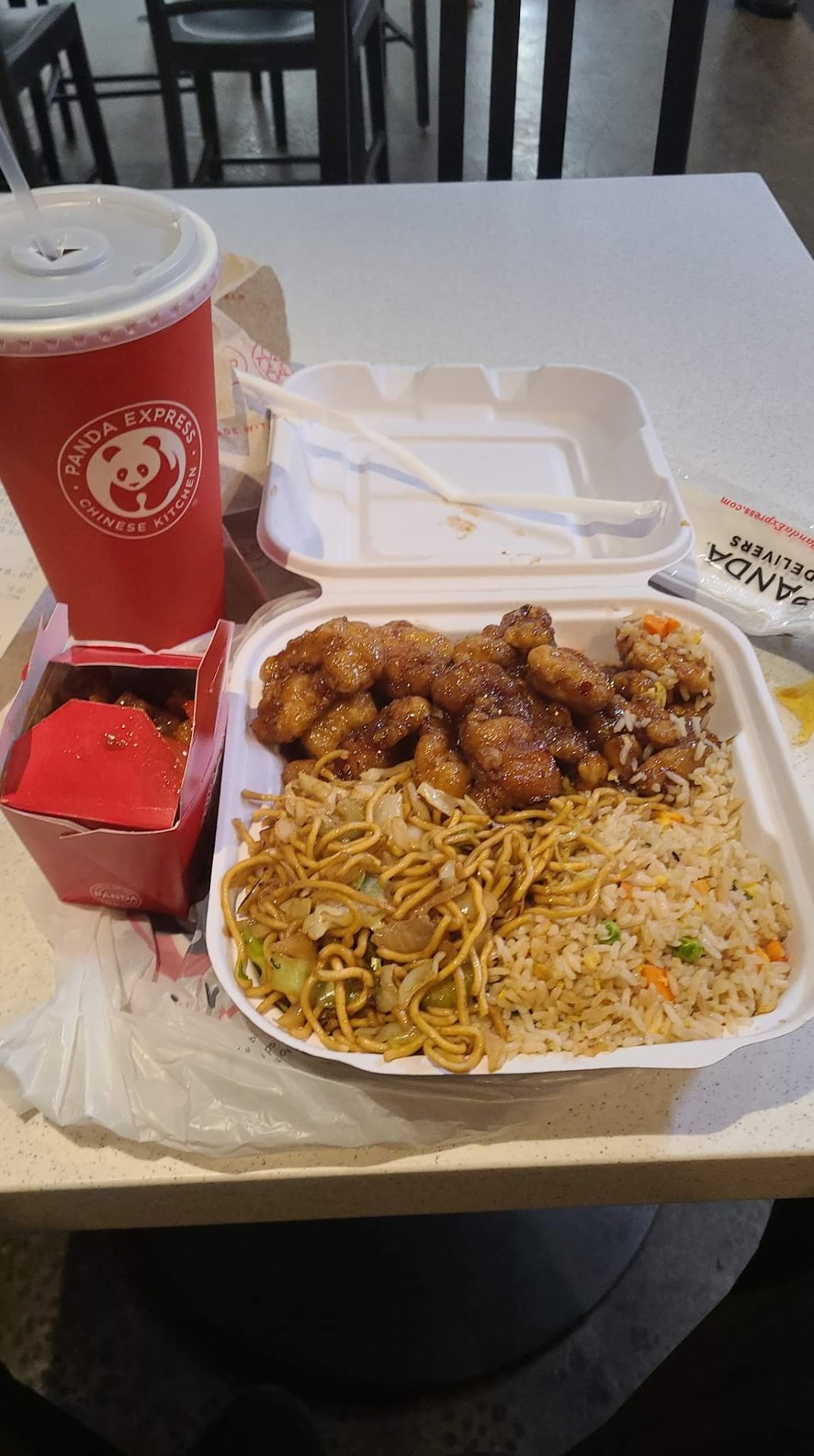 Read moreI LOVE Panda Express the food quality is always really good, they keep it/them clean by "them or they" I mean pretty much any Panda I've ever been to. They also give you WAY to much of the starch weather it's the rice or the lo-mein. I started getting just vegetables instead of a starch, well they generally under cook their vegetables to a point that they're hard to chew. I guess to discourage anyone from getting them. They are getting stingyer with the protein especially if you pay the extra money for an upgrade to a shrimp or steak dish. All that being said I'm still giving them five stars because I've NEVER walked in and gotten the creeps, or worried that I was going to get the "green apple quick step!!!" If you know what I mean!... Like you do at so many no name, off brand Chinese...