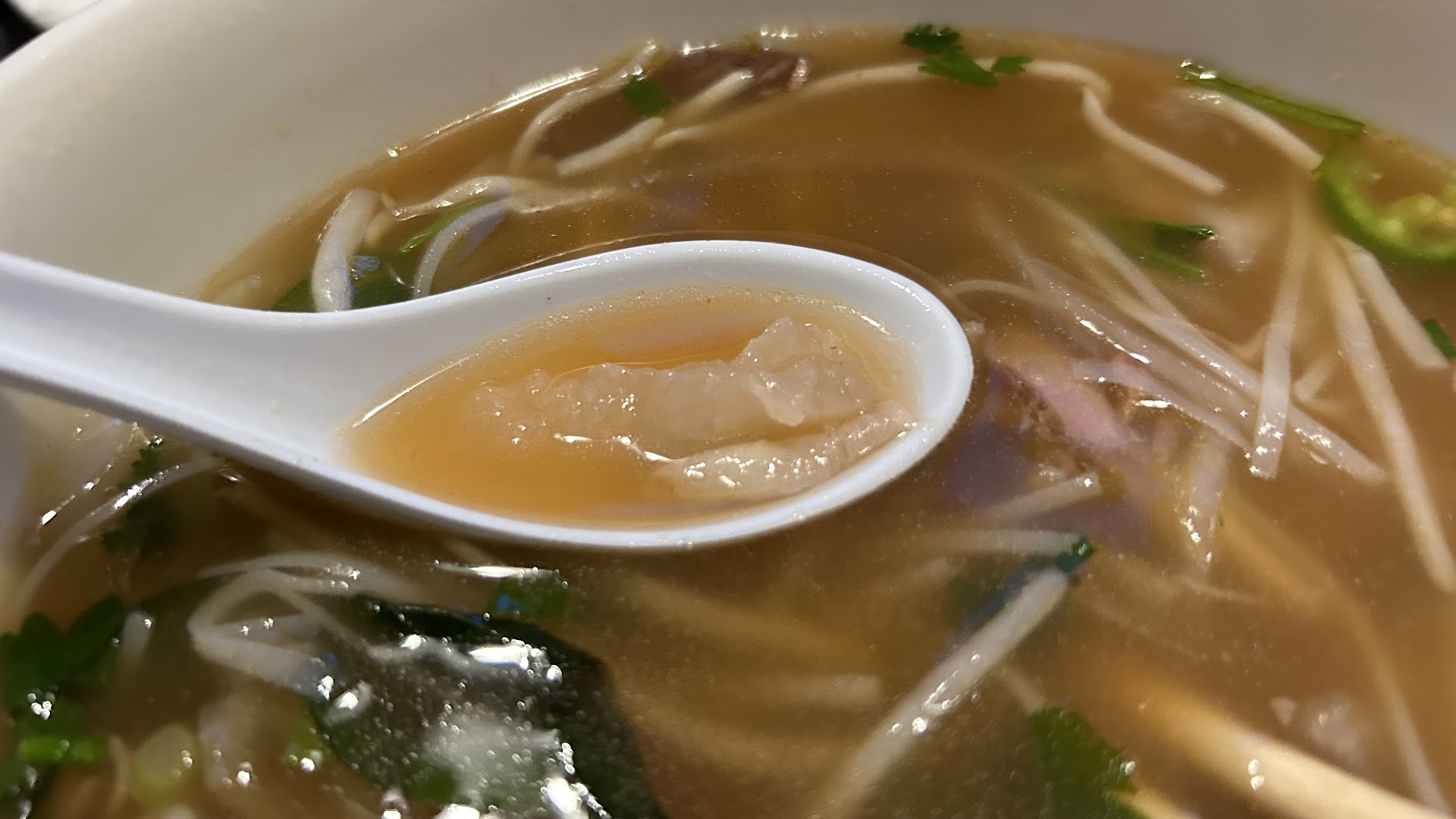 After a long day at Universal Studios, we decided to get some Pho before going back to the hotel in Glendale. Most of the pho restaurants in Chinatown close early except this one near our hotel open until 10PM. There's no parking on the street, only in the back and we do have to pay for parking, quite hard to find a space since it's dinner time. There's rear entrance so it's easier than going around to the front restaurant. The restaurant is simple and clean, 2 seating area divided by a wall, we got to sit in the back. The service is nice and attentive. The prices are as high as in the Bay Area but it's OK until the food came out. I ordered Pho with flank, tendon and brisket, my daughter likes tripes and steak, my wife ordered the special and my son ordered his favorite bo luc lac (shaken beef with rice). One thing I dislike VN restaurants is on a slow day, they try to save money by skimming the meats, flank beef were all broken pieces due to over cooked and cut too thin, these should be thrown away but they stuff it on my bowl. My daughter was shaking her head, she found 3 little string of tripes. I ordered the large bowl and there are only a few pieces of meat, broken flank and over cooked tendon. My wife special bowl somehow she had some meats. My son got away with shaken beef which is sweet and not to bad, but when I asked if you would come back here again for this, he said no. The pho broth is actually good, lots of veggies, everything is fine except the kitchen dispersing meat badly. To me, any restaurant that's skimming a few cents for meats should not be in business. I prefer to pay more and have a decent meal after a long day of...