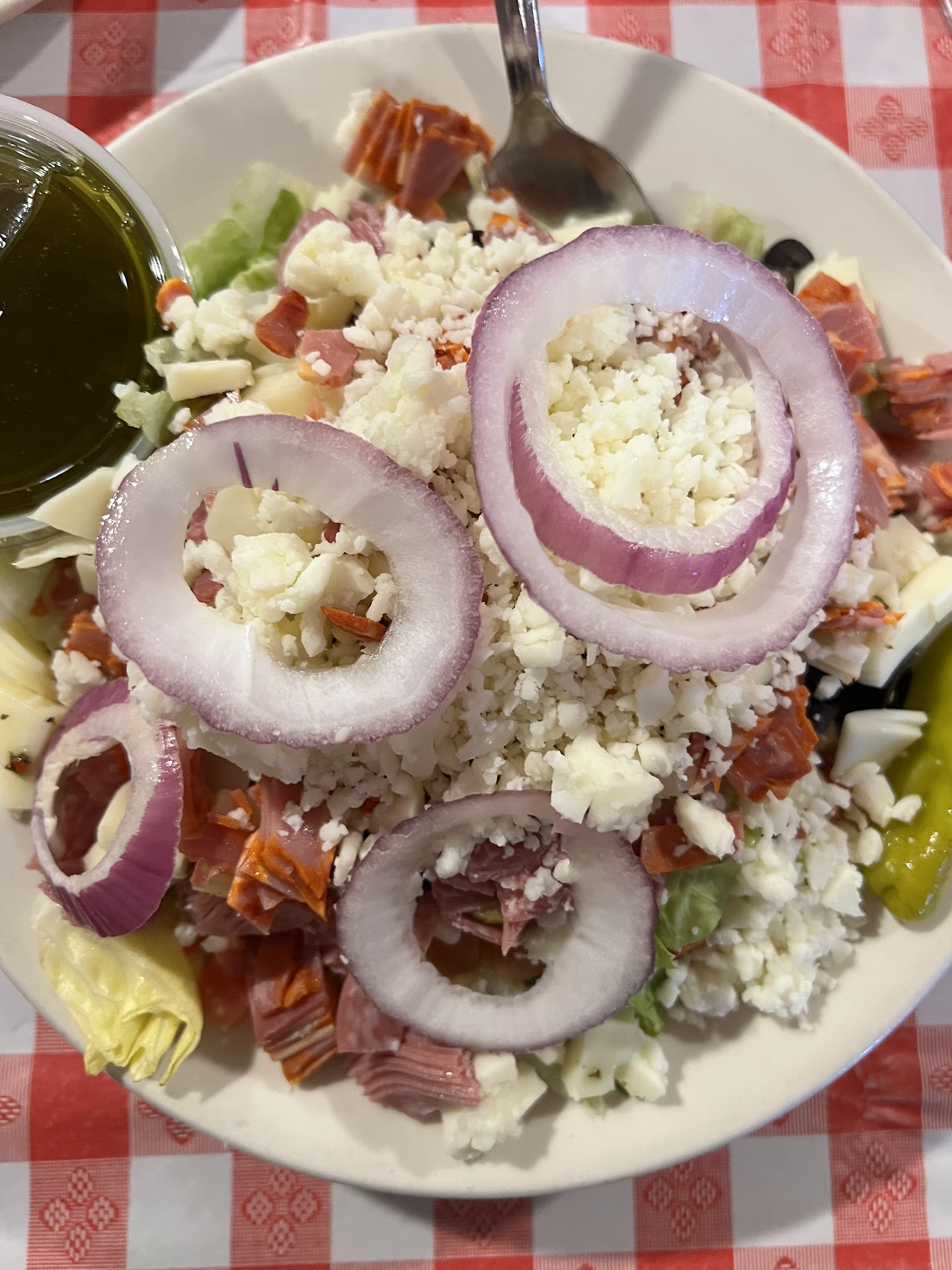 Can you believe I’ve been in the valley over 20 years, driven by a hundred times and never stopped until today? Me either! Talking as a family today we decided we’d like to try a new pizza spot for an early dinner. Pullano’s came up and we said heck yes and headed over. The location was easy to get to and though the parking lot was pretty busy it was easy to find a spot nearby. We were a bit confused at first because there were multiple entrances so we walked in the front facing Thunderbird Rd. We quickly realized we were on the bar side, but after an easy walk through an opening we landed on the family side (facing 51st Ave). The door facing 51st walks you right into the hostess who can seat you or you can pick up a to go order. We were greeted right away and walked over to an open table. For 4pm it was really busy. That’s a great sign to us. After looking things up on the way we decided quickly on antipasto salad and the xl pizza with 20 wings special. We also ordered a few fountain drinks and beer from the tap. Our server was great and we never had to ask for a thing. The salad and wings came out first and both looked and tasted great. I did get the Italian dressing, but ended up using ranch instead because all I could taste for the insane amount of olive oil. The salad was delicious. The lettuce was fresh and crispy, full of meat and yummy peppers on the side. The wings were fried and decent size. They were moist and not over done or dry. We ordered them hot, but they could’ve been a bit hotter for us. Well just increase the heat next time. The pizza came out last and oh man did it look amazing! Piping hot and great amount of toppings and cheese. The sausage had great flavor and my kids loved all the pepperoni. The pizza wasn’t too thin, a little more doughy than our usual spot. When with the bit more dough the bottom crust was crisped perfectly and the pizza did not sag too much when picked up. The sauce had great flavor as well. If you’re wondering about portions they are good size. We still left with a few slices and a little salad left over. Great for a second meal if I share (wink wink). The vibe was great and what you’d expect an older mom and pop pizza spot would be. The bar area was large and included music and pool tables as well. All in all a wonderful experience. My only suggestion is to maybe label the entrances to combat confusion and family/kids don’t end up in the a bar area.