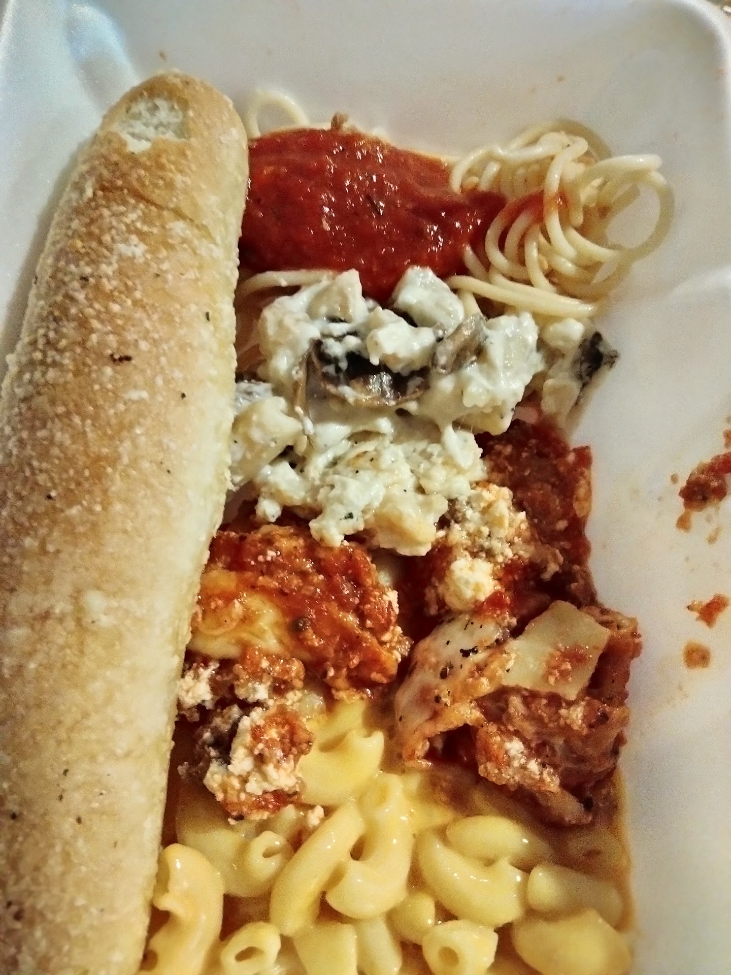 We ordered: White chicken penne bake- absolutely amazing! The mushrooms were beyond delicious. The chicken pieces, weren't pieces, they were huge! Had ricotta in it and it worked so well.