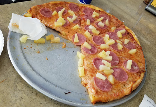 Brought my wife and daughter, after reading the favorable reviews here, and let the server know we were there for our first time. We ordered a Hawaiian pizza (I'll take the blame for that), but then we were served a cheese pizza 10 minutes later. I'm usually pretty lenient about just eating what I'm served even if it's wrong, as long as it looks appealing, but I'll say of all pizzas, cheese? C'mon. I politely asked if they would take it back and bring us Hawaiian pizza. To remedy the error, they grabbed a handful of canned pineapple and cold Canadian bacon, decorated the already-made cheese pizza, threw it back into the oven for a minute or two to ensure the crust was rock solid, and brought it back to us a few minutes later. This was easily the worst pizza either of us had ever eaten, and I would have much rather had a $5 hot-and-ready. We snapped a picture of the disaster and, unable to finish a single slice, walked out $16 in the hole.