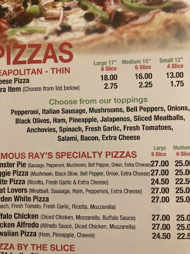 Today I arrived and saw what I expected to be what I would get. I saw a slice pie out with 4 slices and it had been cooled completely . Exactly what I want. I look around and see no one without a food in front of them in the restaurant. Now this is a lunch break. I have about 20-25 mins. So I get slices quite often because they fast and delicious. I ordered three slices of pepperoni and a soda. I sit down and await my food. Now twenty minutes has gone by I look at the time I have five mins left. I’m not going to have time for lunch now. I turn and see to front counted person and asked if they had put my order to a fresh slice pie that hadn’t cooked yet. And she said yes. I asked why? I don’t want a fresh pie. I wanted the reheated slices as for why I explained in the previous paragraphs. If I wanted a fresh pie for the price I paid for 3 slices with one topping and soda. I could get a small-medium fresh pie with pepperoni for the same price. But that’s not what I wanted. When I asked why I got the fresh pie and not the slices I was told “I didn’t know you wanted them” this is the same person behind the counter that I dealt with the last two times I visited rays pizza. The last two trips ended with me not ordering anything and leaving to choose somewhere else to eat because they did not have a slice pie ready that had been cooled off. And when I asked she told they only had a fresh pie in the oven which I declined and politely explained why I wouldn’t order (as I explained above) she was polite and I left. Fast forward back to today. I didn’t feel the need to specifically ask for reheated slices because there was half a pie cooled and resting in the window. So expected those to be where my slices came from. When I found out after asking that that not the case and my time for lunch had run out. I asked for a refund because I didn’t want a fresh pie. (As stated before I could have ordered a fresh pie with what I spent but that is not what I wanted ) As she started my refund my slices came out of the oven so I decided not to get a refund just to get the slices to go instead. I would eat then back at work. When I returned to work, I had 3 bites of a slice and couldn’t eat it. It was completely saturated with grease through and through and was soggy and under cooked. I threw away the slice I ate from and gave the other 2 slices to a coworker who ate about the same as I did and threw the remaining food in the trash as she also couldn’t get past the grease and sogginess. Unfortunately my mind has been made up. I repeated tried to give the new ownership the benefit of the doubt but have been failed the last 6 times I’ve been in. I didn’t get into the first 3 visits of the last 6 as they are all similar. As I started off today is a sad sad day as I can no longer give the benefit of the doubt and hope that the quality and attention to detail would eventually...