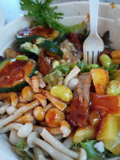 Ā Ā Ā Read moreI was initially really excited to try this place out ever since I started seeing construction for it in my local mall. I think the concept for it is really great and its an amazing way to introduce a new cuisine to an unfamiliar population. However with that being said I think my hopes were a little bit higher for the quality of food I got. I started with a build your own bowl with the base as the rice noodles, protein the crispy chicken, mushrooms, sweet and sour eggplant, corn and the miso sauce to top it off. I'm not sure if the rice noodles were supposed to served hot or cold, this was not explained to me by the workers, but when I dug into my bowl the noodles were ice cold. Almost like they weren't given enough time to warm up before serving. This could be due to me coming to this place around opening, but my companion had rice as their base and the rice was warm. The chicken in my bowl didn't seem to taste that fresh, and again was not very hot, it was lukewarm room temperature at best. I really did enjoy the hot toppings, the mushrooms and eggplant were great and that miso yuzu sauce was amazing. I know this is a new place so maybe they are still getting into the swing of things but I think I might give it awhile before trying this...