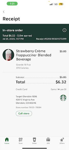 Read moreVisited the morning of 02/21 after 8AM, in the drive-thru - after I placed my order the barista said, "Our credit card machine is down I can take your card to our register." I replied, "I am paying with tap." The barista said, "I can take your phone to do tap." I replied, "I am not giving you my phone." Then she replied, "You can come inside to pay." I said, "I came through the drive-through for a reason." I canceled my order and had to wait in line to get out of it. As soon as I got out of the drive-thru I called the store to speak to the manager and because they weren't there I talked to an unprofessional shift lead. I informed her of what took place and she said, "Our machine has been down for two days and it's out of our control - we have already called it in." During our conversation when I was telling her the workers shouldn't be taking anyone's phone to complete the payment she started putting words in my mouth saying, âWell, I understand itâs uncomfortable for you to hand your phone over to us.â I never said it was uncomfortable for me - the shift lead was putting words in my mouth & kept talking over me - I got no where with her so I am leaving this review. If your credit card machine has been down for two days in the drive-thru DO WHAT IS IN YOUR CONTROL, PUT A SIGN UP & STOP TAKING CARD PAYMENT IN THE DRIVE-THRU. Taking customers' phones to take payments is a LIABILITY! Is Starbucks going to take responsibility for the barista adding their own tip? That's fraud. What happens if the phone gets dropped and there is damage? Is Starbucks going to take responsibility? Please educate staff on this issue & just because your staff and location may not have these issues (yet) doesn't mean it still doesn't happen to...
