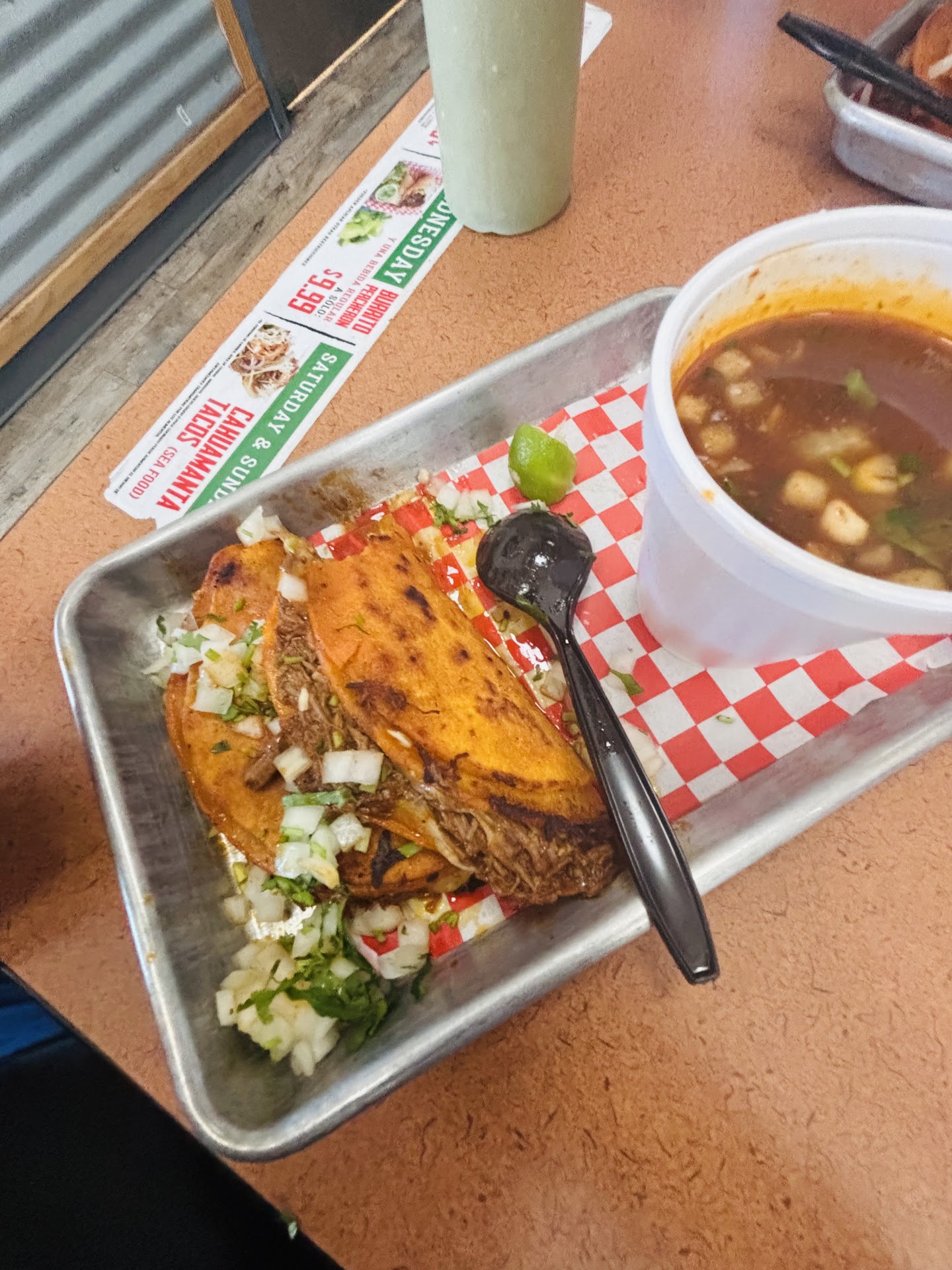 Read moreI hate to do this but ..my first time here walk inn seat down in wait and wait until i see people go to the counter an order in pay up front the lady never say anything...anyway 7 tacos one order of chilaquiles and 2 large waters 47 dólares wow !!! Ok my tacos there NOT cabeza there some birria first disappoint second my jamaica water taste more like plain water . Third chilaquiles wow some tortilla chips with some little verde salsa white cheese beans in a tomato salad...sorry people is this the best mexican food in Phoenix i feel bad for your guys..ups almost forget there need a bigger sign outside not there...