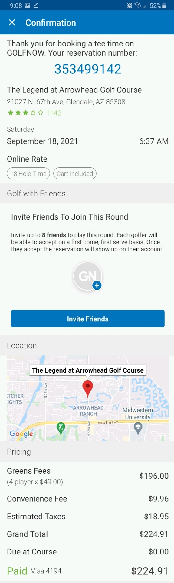 Read moreOn 9/9 I booked a tee time for 9/18 for a friend's birthday party and paid full price entirely up front. There was a note on the tee time saying they were undergoing some construction so only the back 9 would only be available but would be finished 9/16. Since my tee time was two days after this no problem.