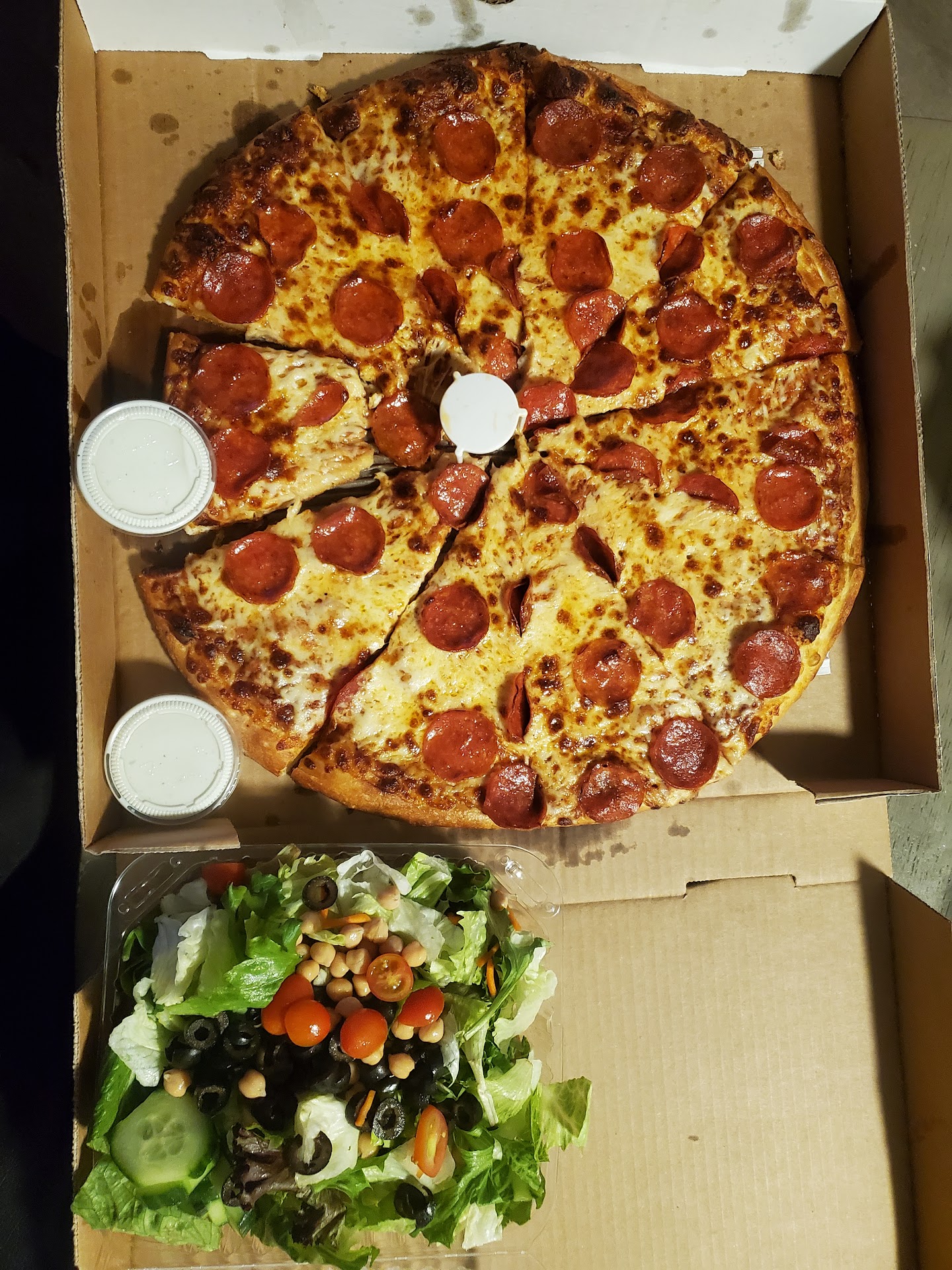 he called the restaurant and i agreed to return the small salad which has always been free. the result was three nasty calls saying that chicken cacciatore customers have to pay for salad.