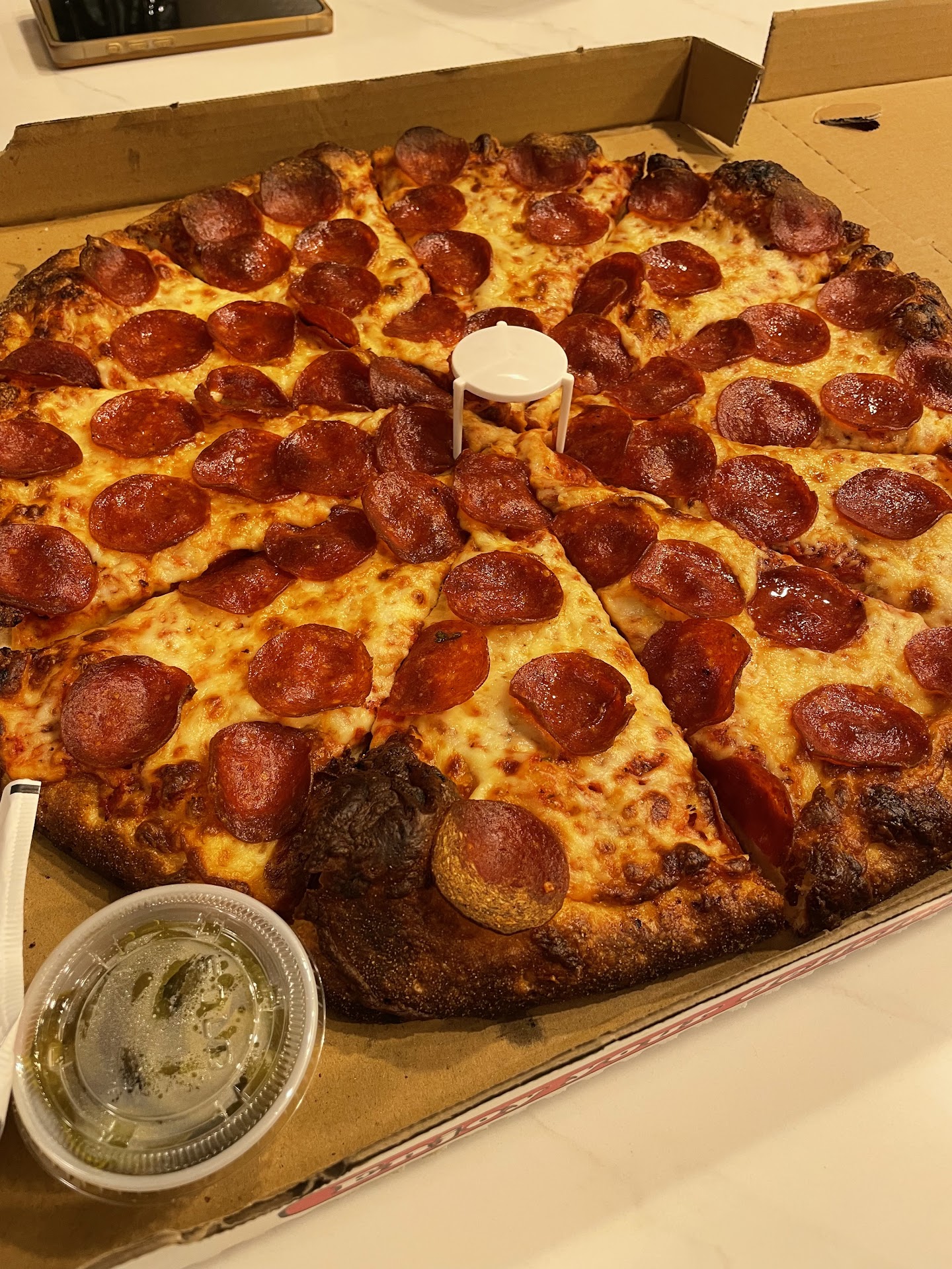 The dough was good and the pepperoni and mushroom toppings were large, but there was not too much cheese and it slid off the pizza.