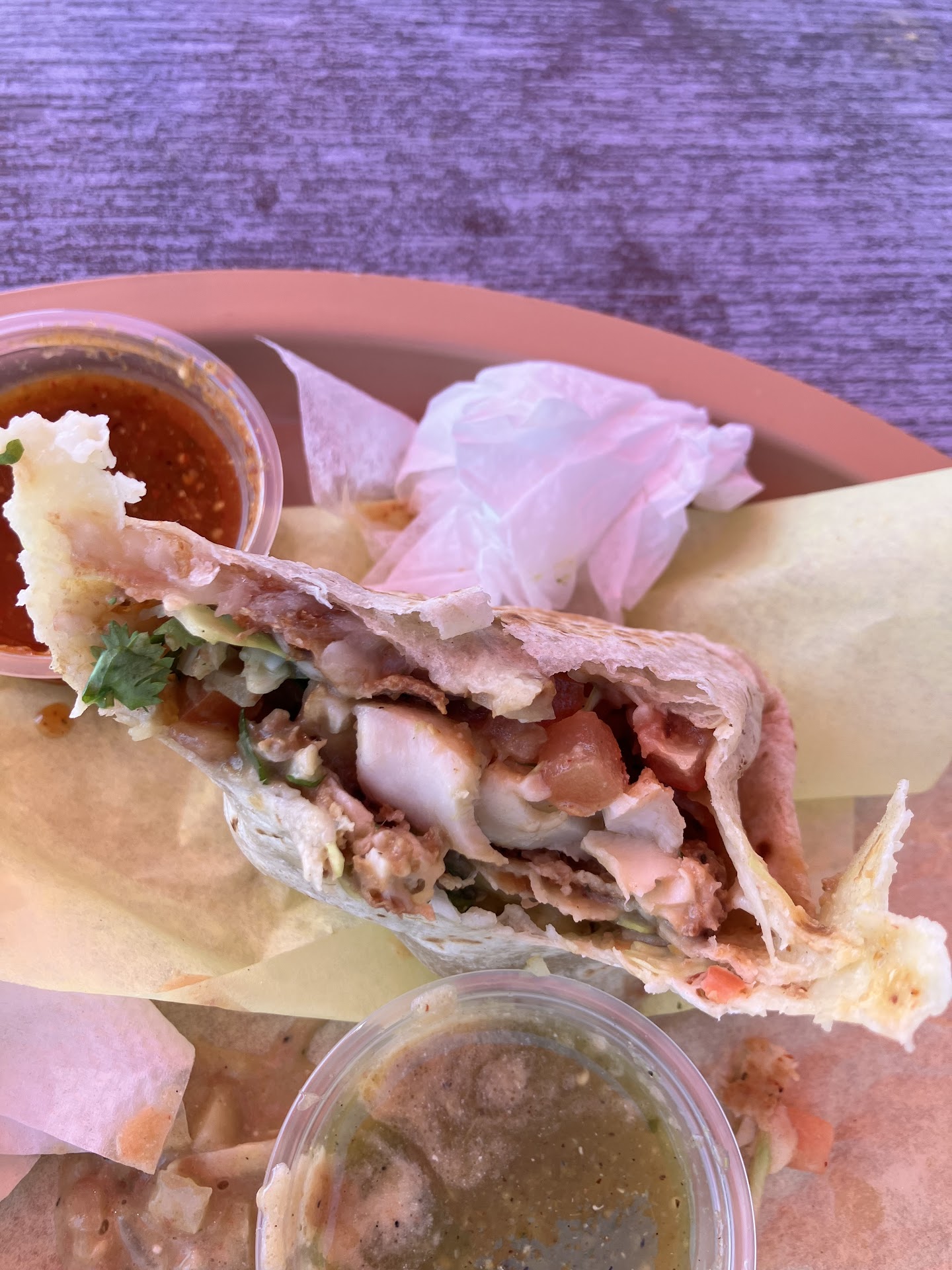 My favorite item is the seafood tostada. I've been ordering this for many years. There is some constant problem that they don't order enough ingredients, so by dinner time, they're often out of stock. The carne asada burritos are usually good, especially the seasoning , but it's not consistent--sometimes it's far too greasy. The tortilla chips are good, fresh...but ordering guacamole and chips is a huge waste of money. They give you two very tiny plastic condiment containers with mediocre guacamole with very little avocado and big chunks of onion. I like the radish slices and fresh salsa that comes as a condiment option. It used to be a little self service option, but with COVID, you've got...