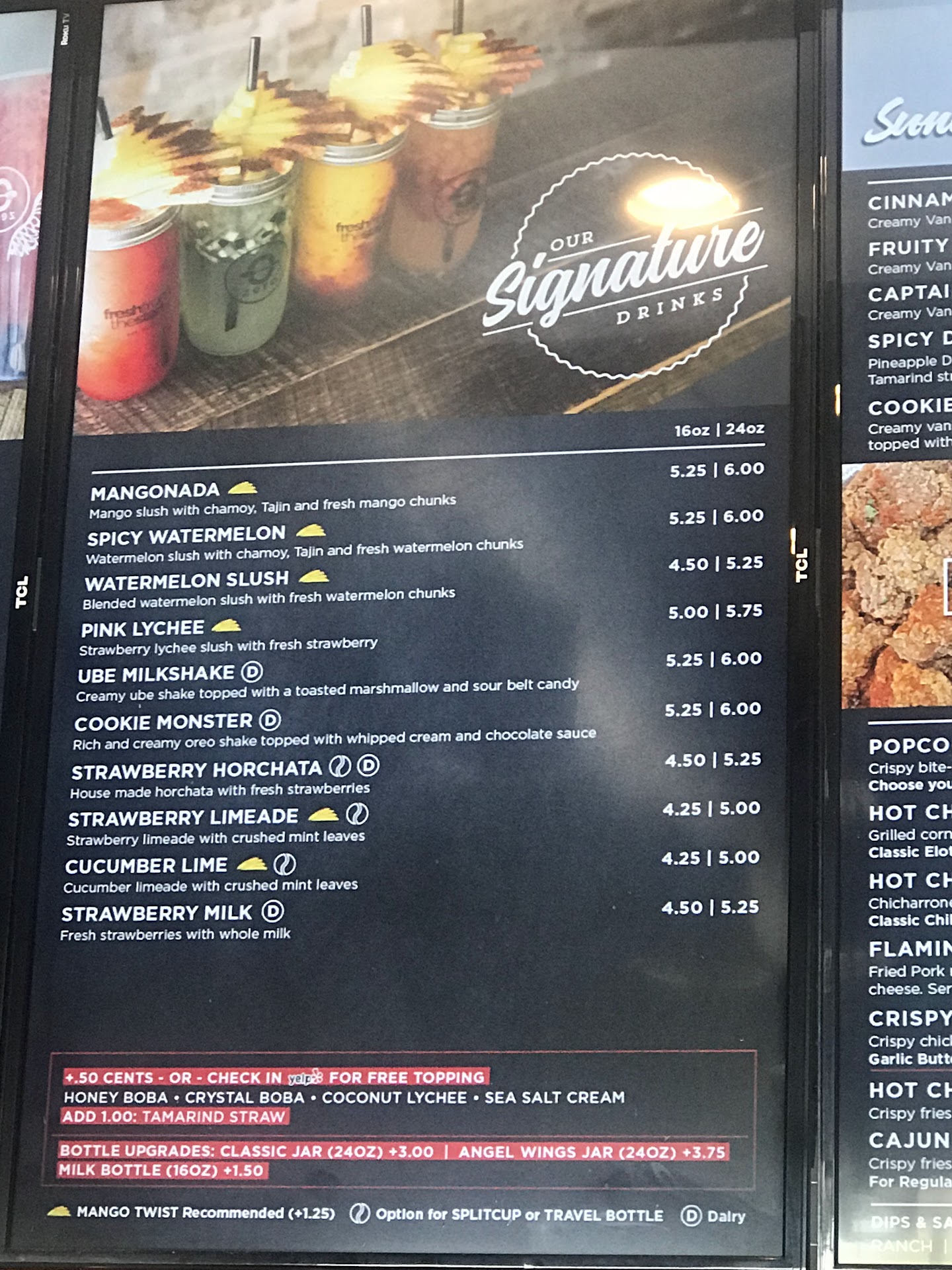 Read moreI was really excited to try this place out! And when I heard they were expanding to AZ, I was super excited! It's a bummer that I'm leaving this review since my friends and I left a bit confused and upset. A group of us took a trip to the Glendale, AZ location and as expected there was at least a 30 minute wait to order. Understandable - Anywho, the concept is very cool and hip, very modern place. Friendly and busy staff of course. We ordered a few things on the menu. For instance, the mangonada, strawberry horchata, the hot Cheetos corn and a variety of boba teas ..