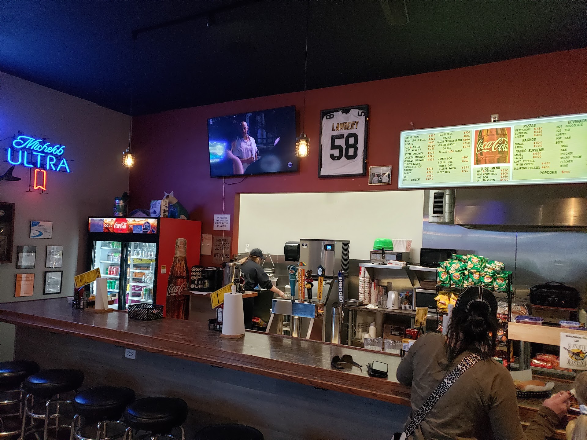 Read moreThis is the best little dive bar with food I've ever been in! The sign says "tourists welcome", which always makes me a little skeptical, but seriously, this place is amazing! Our server was attentive, friendly, and amazing! The food was piping hot and delicious. They don't offer sides with their food, but honestly, you don't need them! I got the club and hubby got the Swiss brat and we split them. Both were delicious! My kiddo got a chicken sandwich, which he said was "two thumbs up." If you're in Glendive, give this...