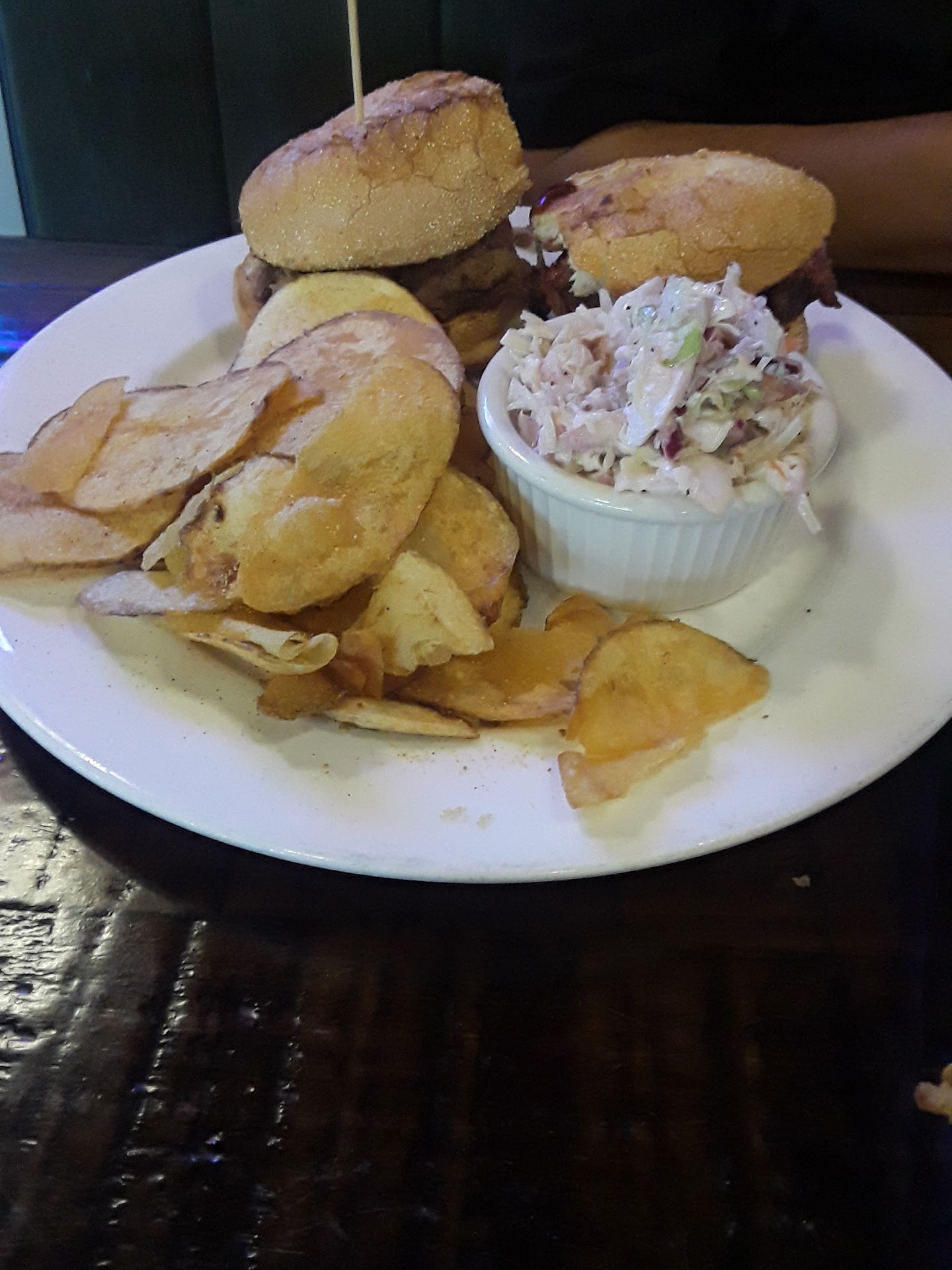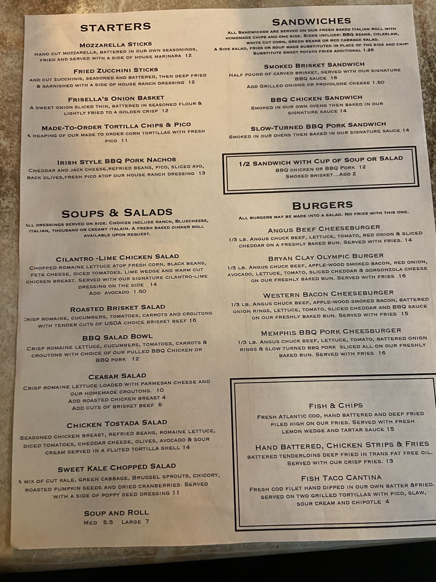 As for the food, it was mostly delish and portions were huge! We ordered the House specialty Chicken, rib and brisket combo with chicken tortilla soup and red cabbage. We also ordered the mozzarella sticks. First off, they split our meal without letting us know and then they brought out the first tray. I commented how much food that was ad she pointed at the tray and said she would bring one more. I assumed it was an extra “plate” but found out it was another tray with my half of the food!!! Crazy. The mozzarella stick order was huge too! Delish too. Crisp on the outside and sheet goodness inside. The marinara dipping sauce was awesome too. As for the rest of the meal, chicken and ribs were on point with chicken as the standout of the entire meal. BBQ sauce a perfect compliment. The brisket was a little dry but had great flavors. Cabbage salad on point. Tortilla soup had promise. Was outside and cold, so the soup got cold very fast which didn’t help but it needed a kick of some kind. They don’t have salsa or tapatio (just tobacco), so we decided to pack it to go along with the ton of leftovers to enjoy later, which we did.