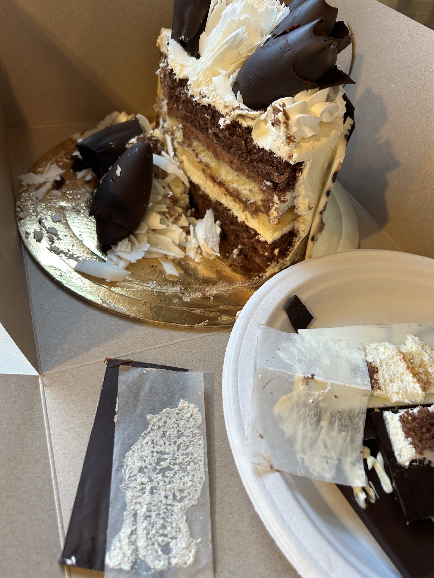 Now I am not going to stop the party and say let me not distribute the cake after we all already sang happy birthday and people are eating the cake. But if I could refund the cake I would. I thought I found a gem of a bakery, but I will never buy a cake from here again. I was embarrassed to serve it. Some of the chocolate still even had parchment paper stuck to it. Like who leaves paper on a cake that people are going to eat.