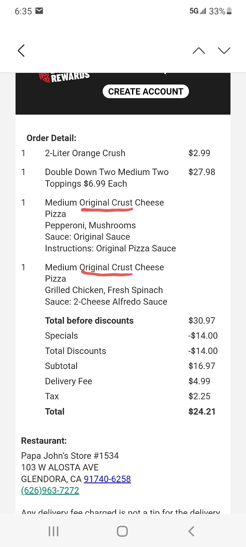 Read moreIâve been using this Papa Johnâs for more than 20 years without a problem and normally would not write a bad review over a single order, but what is my last and final experience with this store was so bad, I have to say goodbye to this store forever. Theyâve permanently lost a customer.