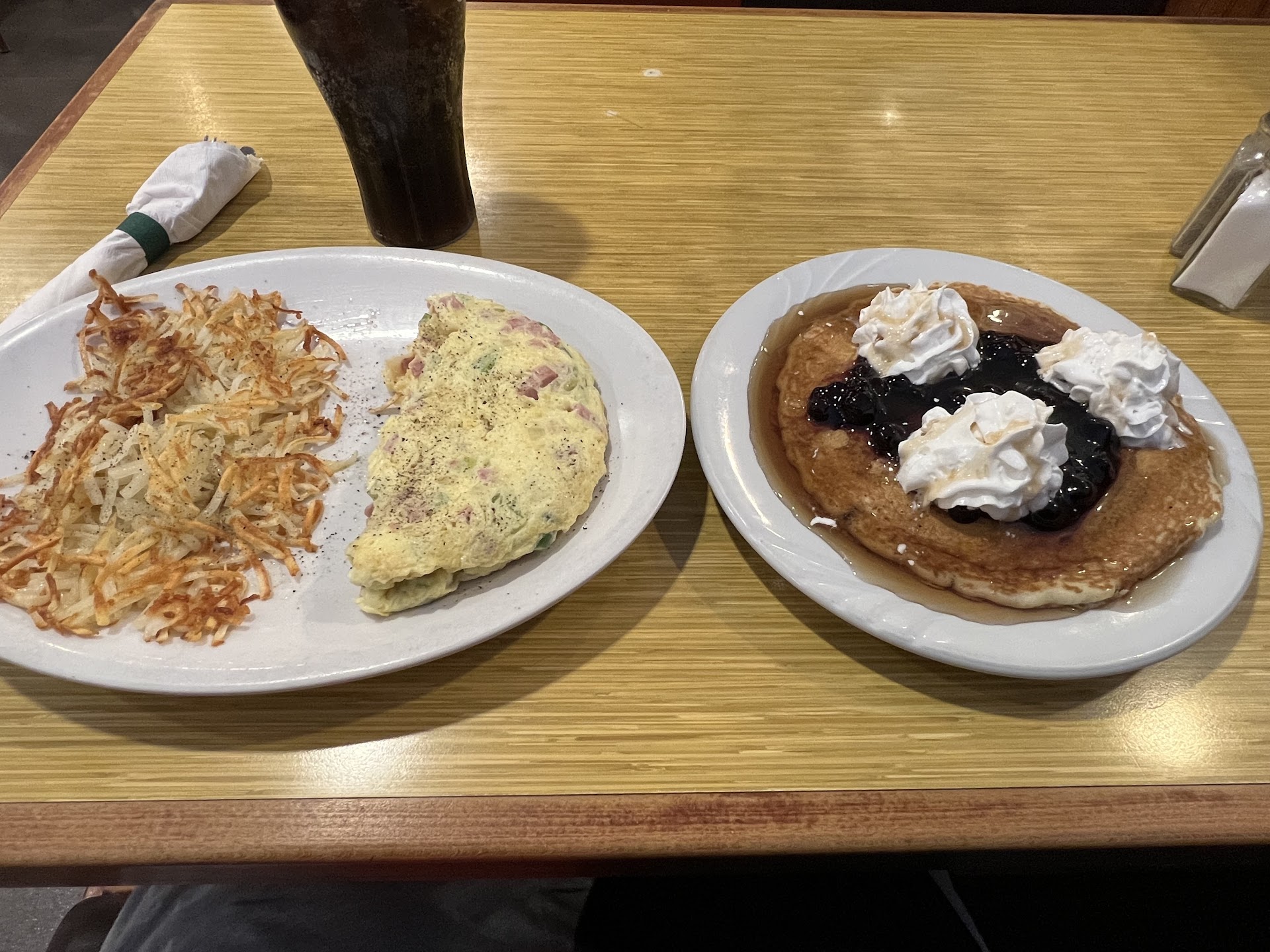 Read moreMy first time here with my family, was very disappointed. It wasn't busy, but took thirty minutes for eggs and waffles. Waitress was curt and unpleasant. We were not given utensils and my father had to go looking around for some since the waitress inattentive. When given our water it was practically slammed down in front of us with a grunt and he seemed put out when we asked for coffee.Very rude service. The chicken soup had raw purple chicken with dish water for broth, while the waffles were lukewarm. All the food was served cold. The best thing I could say about this place was at least their water was drinkable and clear. Burger King has better quality food than this sit down restaurant. I'm going to spend more hours on the toilet from this restaurant than from Chipotle. To all of you thinking of coming here think twice, there is probably a...