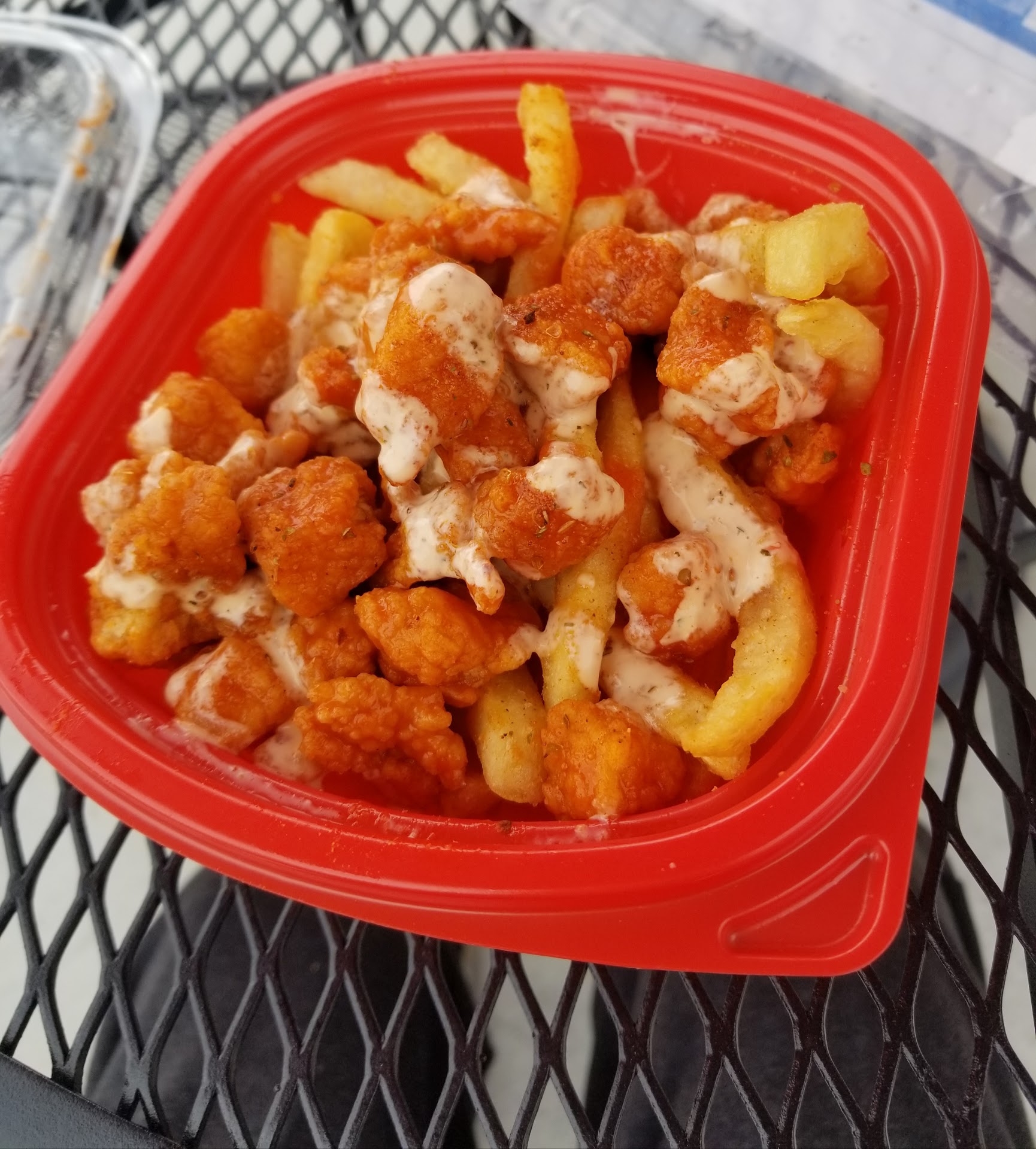 ย ย ย Read moreGood quality! I got a 15 piece pineapple-jalapeno/chipotle with sriracha fries. The chicken was nice and juicy..I imagine next time I'll try well done to see what that's like. Usually I like to take a pic but I'm a wing fanatic and was especially hungry today. May e next time. The Chipotle had a nice wing spice to it, I was not disappointed. The pineapple-jalapeno was a little sweet and personally I'd like it to be spicier but it was good. The crown discovery here ( being that it was our first time) was the sriracha fries! Really good crunchy texture and a nice little kick in the flavor. Can't wait for...
