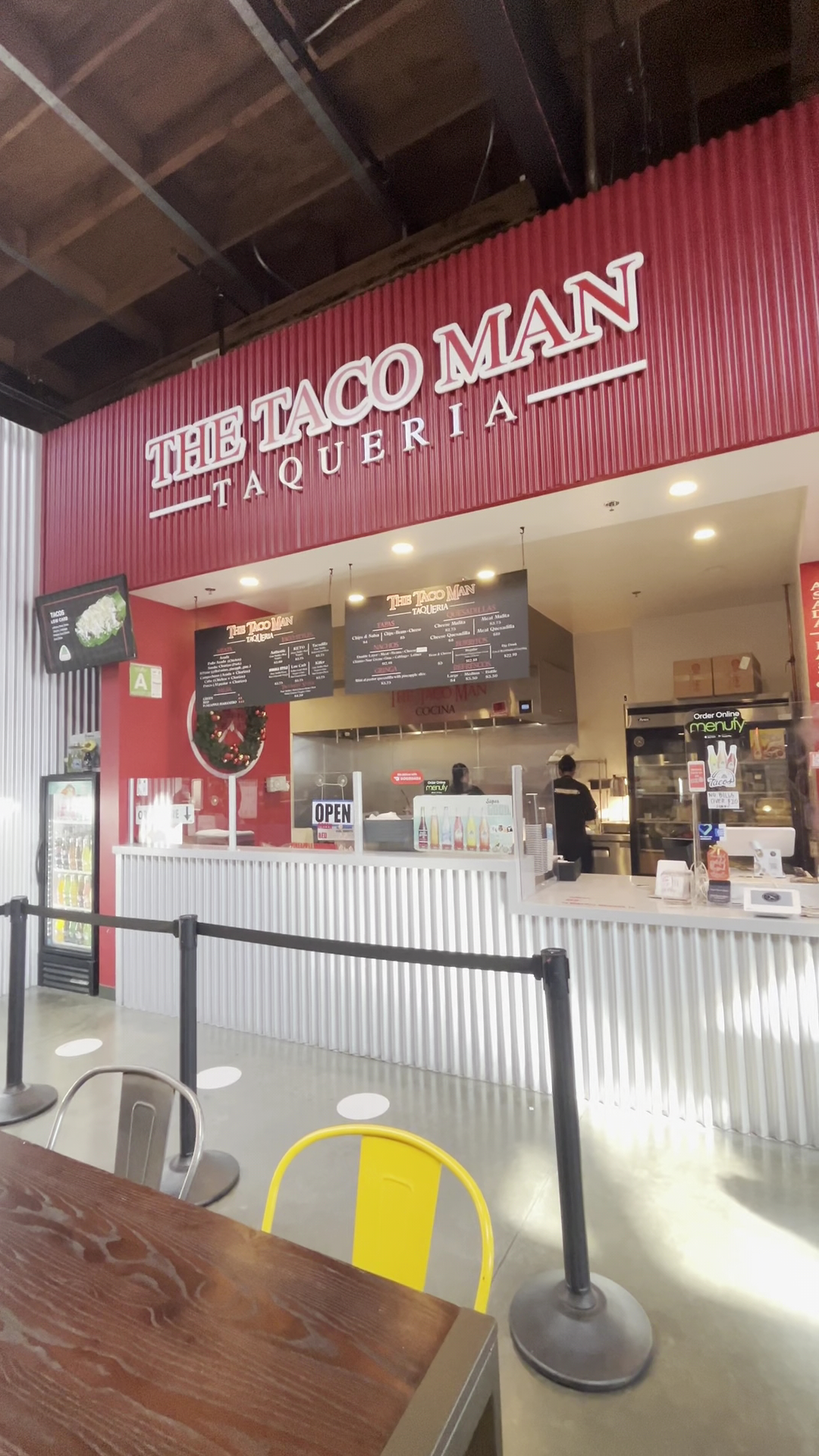 We finally made our way to Glendora Public Market and I decided on The Taco Man while my fam chose something else. I should have read the reviews beforehand, but I was just swayed with the ad for market. I ordered the regular al pastor burrito. The lady making my burrito was nice and followed my request of having the beans on the side. After wrapping the burrito it was placed on the grill to get nice char marks on the tortilla but alas, the meat itself was just warm and greasy on the inside. The person in front of me ordered the big dunk. It’s a humongous burrito for $22+, it was comped by a lady doing marketing, he’s so lucky. This is a place with cafeteria style seating, so the tables and chairs are shared for all customers of all the different stores/shops. Parking is shared as well and...