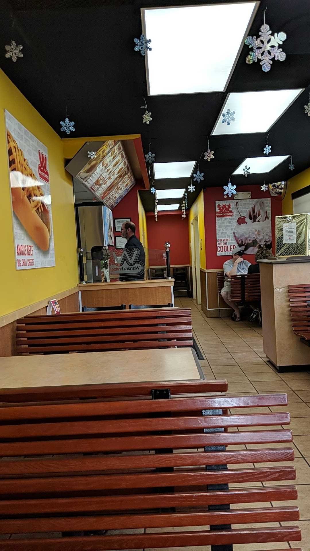 However, I have to knock a star off, due to the fact that the food has been making my mother sick lately. We are not sure why, and we are not going to point fingers at anyone, but something about Wienerschnitzel's food has not agreed with her. I would like for anyone in the company reading this to potentially review the inventory, and look for any food items that might be stale, expired...