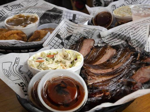 The smoked brisket is a standoutâtender, juicy, and infused with a rich, smoky flavor that melts in your mouth. The bark on the outside adds a perfect textural contrast, making each bite a delight. The chicken is equally impressive, with a perfectly crispy skin that gives way to succulent, flavorful meat. And letâs not forget the ribs: fall-off-the-bone tender, they are glazed to perfection and embody the essence of authentic barbecue.