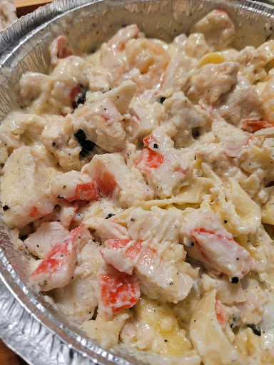 Read moreThis was my second time visiting Moni's. First time I ordered pizza which I thought was edible but mediocre. This time I decided to try pasta instead. Ordered the seafood fettuccine which came with shrimp, scallops, and crab. Not a scallops fan so I asked to sub chicken for the scallops. In my mind the restaurant is winning. Chicken is cheaper than scallops although I likely be charged the same menu price which was $18.95. Placed my order over the phone and arrived at the restaurant for pick up. The bill total was nearly $25. I handed my credit card before processing what he said. While waiting for my order I questioned the server as to why the bill was so expensive. He explained that they charge to change ingredients. Then the young lady who took my order passes by and says "yeah when you sub chicken we still have to charge you bc we cut a whole chicken breast. So it's not really a substitution." Then server even doubles back to try to convince me that costs have gone up everywhere. And he just spent $80 at Applebee's. Whatever....I take my food and head home. Now I totally understand prices going up and just accept the situation for what it is. But when I get home and open the pasta there is IMITATION CRAB (plenty of it), 4 shrimp, and maybe 1/3 of a chicken breast. How am I paying $25 for IMITATION CRAB??!! If your saying costs are going up then at least give me quality product. Then 4 shrimp!! What seafood? I will not patronize this...