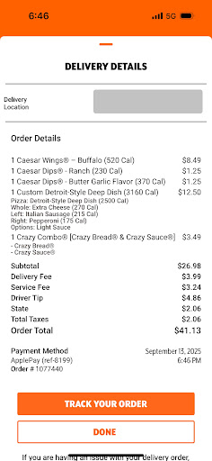 I placed an order through the official Little Caesars app and one of the items I paid for (wings) was never delivered. Since I wasnât home and had ordered for my kids, I couldnât check the order immediately. Later, when I asked my kids about dinner, they confirmed the wings never arrived.