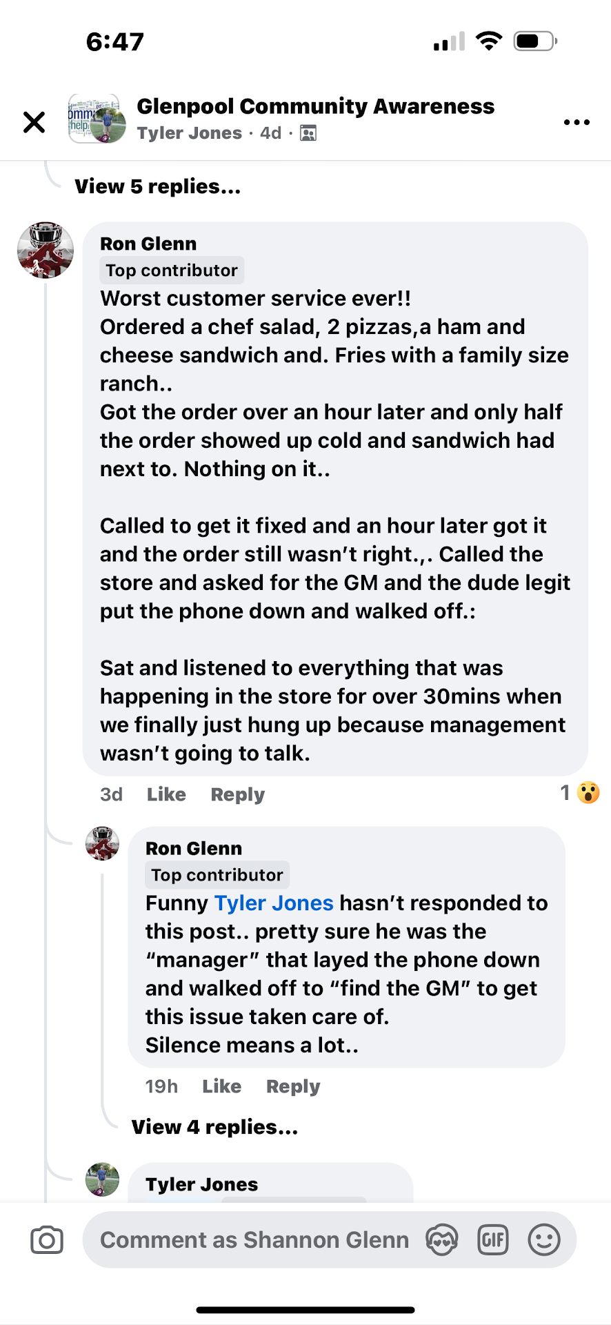 This doesn’t even deserve a one star. We had the worst experience at this Mazzios for our delivery order. We ordered last Saturday at 11:15am. Our order was number 4 of the day since they had just opened. We were quoted 30-40 min which is acceptable. After an hour, I called the call center and was told that our food was on the way. Great, however when it arrived it wasn’t our complete order (missing the salad & the family size ranch), everything was ice cold and the hot ham & cheese that we ordered was more like bread with a tiny bit of ham and a tiny bit of cheese and zero dressing. I called the call center back and explained my dissatisfaction. They asked if I wanted the order redelivered to which I said yes BUT I need it here fast due to the fact that we had to leave by 1pm for our sons football game, it was around 12 at the time. She said it they would get it to us as soon as possible. At 1pm our food was still not delivered so I called the call center for a 3rd time and asked for a manager. As I was on the phone with the manager, our food arrived and was still incorrect. They sent the wrong salad. I told the manager that I wanted a refund and I was told that they couldn’t do that and I would have to call corporate. I said fine, please give me their number and I will call. The kid “manager”, Tyler said he didn’t have corporates number to which I replied, “you’re a manager and you don’t have corporates number?!?”. Tyler proceeded to tell me that he was just “one of the managers, not the GM” so I asked to talk to the GM. Tyler says that the GM isn’t there but then quickly retracted and again she was there but she was “busy in her office doing paperwork”. I said I would like to speak with her so he set the phone down on the counter (not on hold so I could hear EVERYTHING going on at the counter). I was placed like this for 30 minutes until I finally hung up due to the fact that we had arrive at my sons football game. Fast forward a couple days and my husband saw a post on social media by Tyler promoting Mazzio’s Saturday Buffet. He made a comment on said post. See attached pics of this conversation. THIS IS THE WORST CUSTOMER SERVICE I HAVE EVER SEEN! This “manager” should NOT have a manager title and maybe shouldn’t be in the customer service industry at all. I am so disappointed because Mazzio’s used to be a...