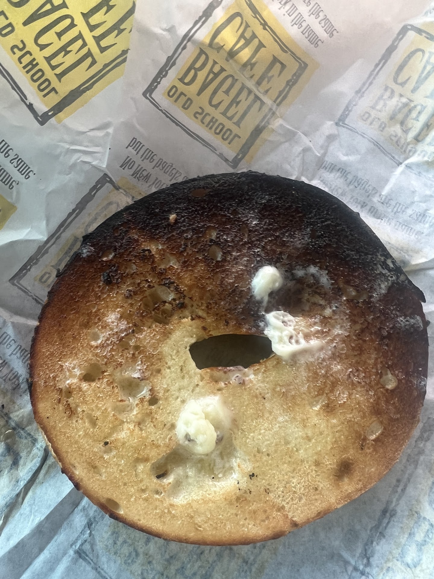 Unfortunately this a a one start review due to how the bagels were sent home on a Togo order. But also due to the way the untrained manager Amanda handled the situation. I paid just under $9 yes $9 for two bagels with butter one with onion cream cheese on the side. I get home and half the bagels were burnt. I understand things happen but when I try to explain to Amanda that they were burnt she recommends I ask for them to be lightly toasted then. I explain that they aren’t brown they were black and she continues to say I should ask for them to be lightly toasted. Um how about not sending out burnt my bagels in the first place. I understand that this is a first job for most of the kids there are she explained yet if she was truly a manager she should train her staff in quality control and maybe just some common sense. If it’s burnt probably don’t send it out. They clearly have to work out the kinks but they definitely need more training especially from the top up. Had high hopes but I’ll gladly spend my...