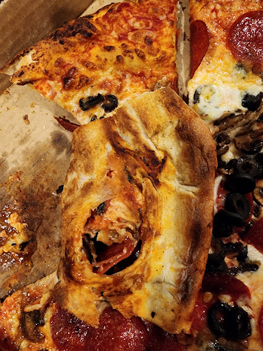 Read moreStopped here on my way home from denver, and holy sheets am I amazed at the fact this place has a 4.2☆. Like I don't believe it, I ordered a calzone, figured that's a pretty simple order, should be quick. Boy was I wrong, 45 min wait later it finally comes out, I was surprised as seeing the place was dead, they had one 2-top and a 3-top out on the patio (of which both parties already had their food) and a to-go order that had called in before hand waiting inside with me. I'm guessing my order took so long cuz of from what I could tell the only 3 people working tonight were girls and quite the chatty cathys and seemed more interested in gossip than work, but I'll stop here and move onto my food, when I cracked my box open to see exactly what it was that I had got I was appalled, maybe it's cuz I'm from chicago, and we know how to do pizza and the like. but I would not call what I got a calzone. Essentially all it was was a pizza with half its toppings and then the other half folded over on itself, and flat with like what I'd say was a dozen thin slices of pepperoni sized Canadian bacon and probably 2 and a half slices of pinapple. Imo this place needs a refresher on their menu items, a calzone should optimally about 7-10 inches in diameter and packed to the gills with ingredients, till the suckers like 2-3 inches thick, not flat as a board with no toppings and the size of half a large pizza. I understand now why this place wasn't bumping for it being a Saturday night, chilies down the road will get you more bang for your buck. Oh yeah, and their bathroom are horribly designed, good thing I didn't need to take a shirt cuz I would have had to sit on the toilet sideways cuz the damn thing was so close to the wall with the Tp dispenser literally inches from the toilet seat. Hell the crapper alone gets this place a 1 star, the rest is just to save you all from regurting your...