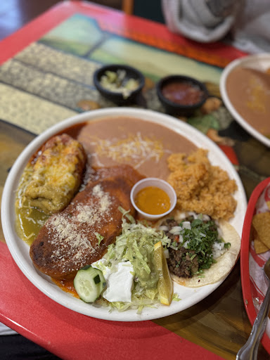 My wife had the cheese enchiladas and I tried the large combination with ground beef taco, relleno (soft) and chimichanga (Christmas style with red and green sauce)