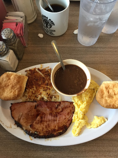 Read moreI’ve only eaten here once. I got breakfast with ham, biscuits, scrambled eggs, hash browns, and chocolate gravy. The ham was great, thin and a little skillet burnt. The biscuits felt spongy like they were leftover and microwaved but they tasted good. The chocolate gravy tastes like a lumpy homemade chocolate pudding. Hash browns were tasty and cooked crispy. The pancakes are really big. They did accept an out of town check. No credit/debit cards accepted. Staff...