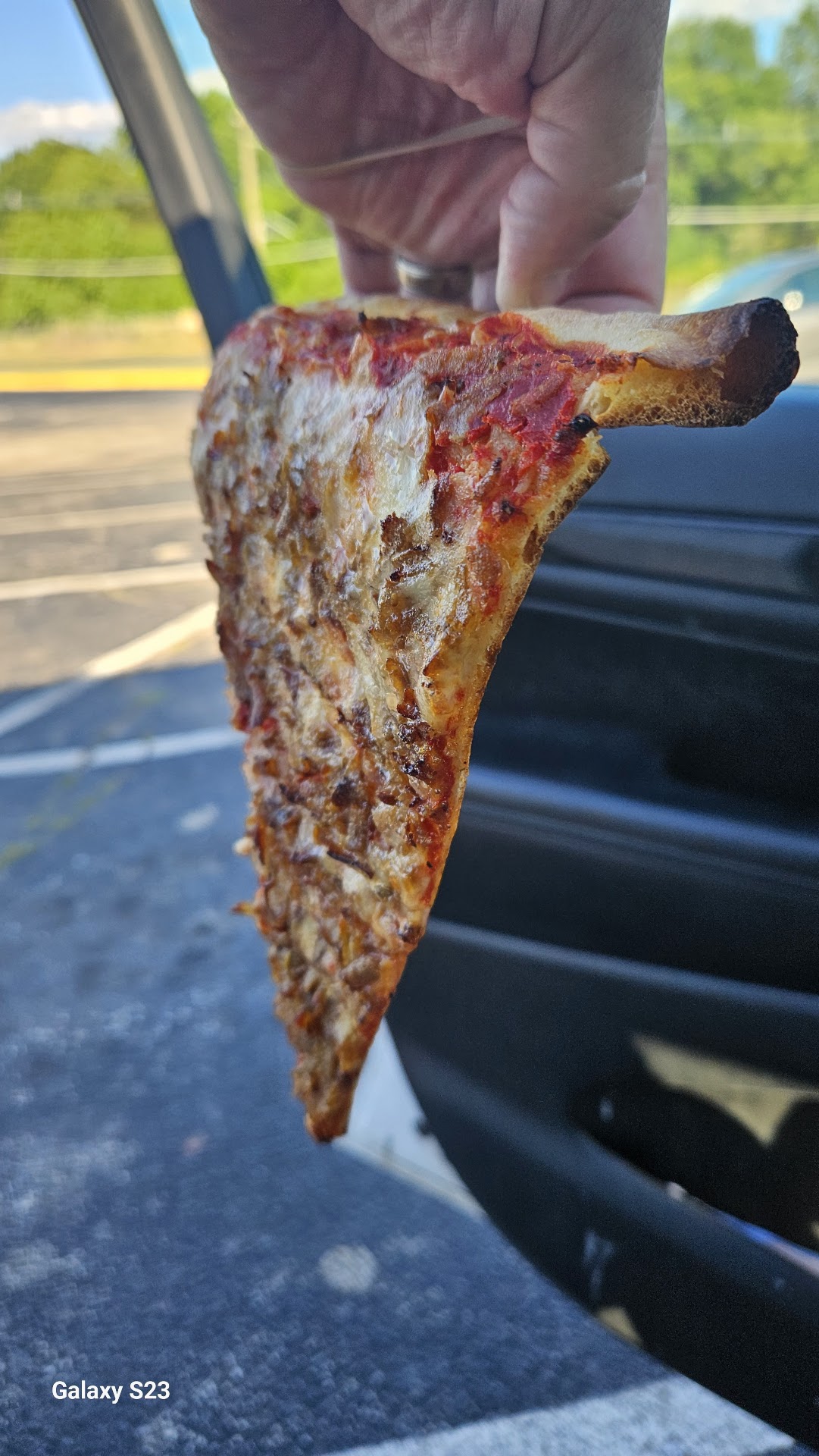 This âpizzaâ wasnât pizza. It was a crime scene in a box. I ordered a large pie and wings and was charged $42, which, for that price, I expected the wings to be delivered by a shirtless firefighter and the pizza to come with a Sinatra performance. But instead, I got a crust that tasted like it was made from the regrets of a dead baguette, and sauce that I can only describe as off-brand ketchupâs sadder cousin. I asked for extra sauce thank God they forgot it. I wouldnât have survived the trauma of more of that tomato-flavored betrayal.