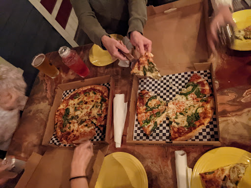 Read moreThe restaurants in Deltaville were full at 8pm on a Friday night in early October which was unexpected, so our group of five friends drove to Mathews to get pizza. We called and ordered ahead, a Rigby Island pizza and a New Pointe pizza. When we arrived they were getting ready to close but the staff said we could sit on the porch to eat which was super nice of them. They served us drinks and dessert as if we had ordered for dine in. We were so happy to have such friendly and welcoming service since it was so late. Our waiter Michael was wonderful and we will certainly be back. That buttermilk parmesan dressing they have is...