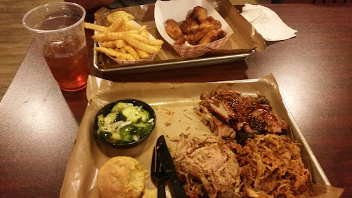 I'm a glutton for punishment so the family and I got more food than we should have, but I'm glad we did. The onion rigs were delicious thin slices light breading and lightly fried, Homemade ranch was perfect pairing. Sweet Potato Fries were like a dessert. Smoked wings were some of the best I ever had. Thoroughly cooked, not dry, crispy but not burnt on the outside, tossed in BBQ they were a dream. Burnt Ends were text book with a saucy flare. Pork Rinds made fresh, still crackling when they came to the table. Wife had the pulled pork, was delicious and juicy great flavor but still that blank canvas for you to sauce it how you like it. I didn't try the Mac n Cheese, but one of my picky little mac eaters who thinks EZ Mac is the only Mac tore up this home-style Mac N Cheese in record speed so it must have been good.