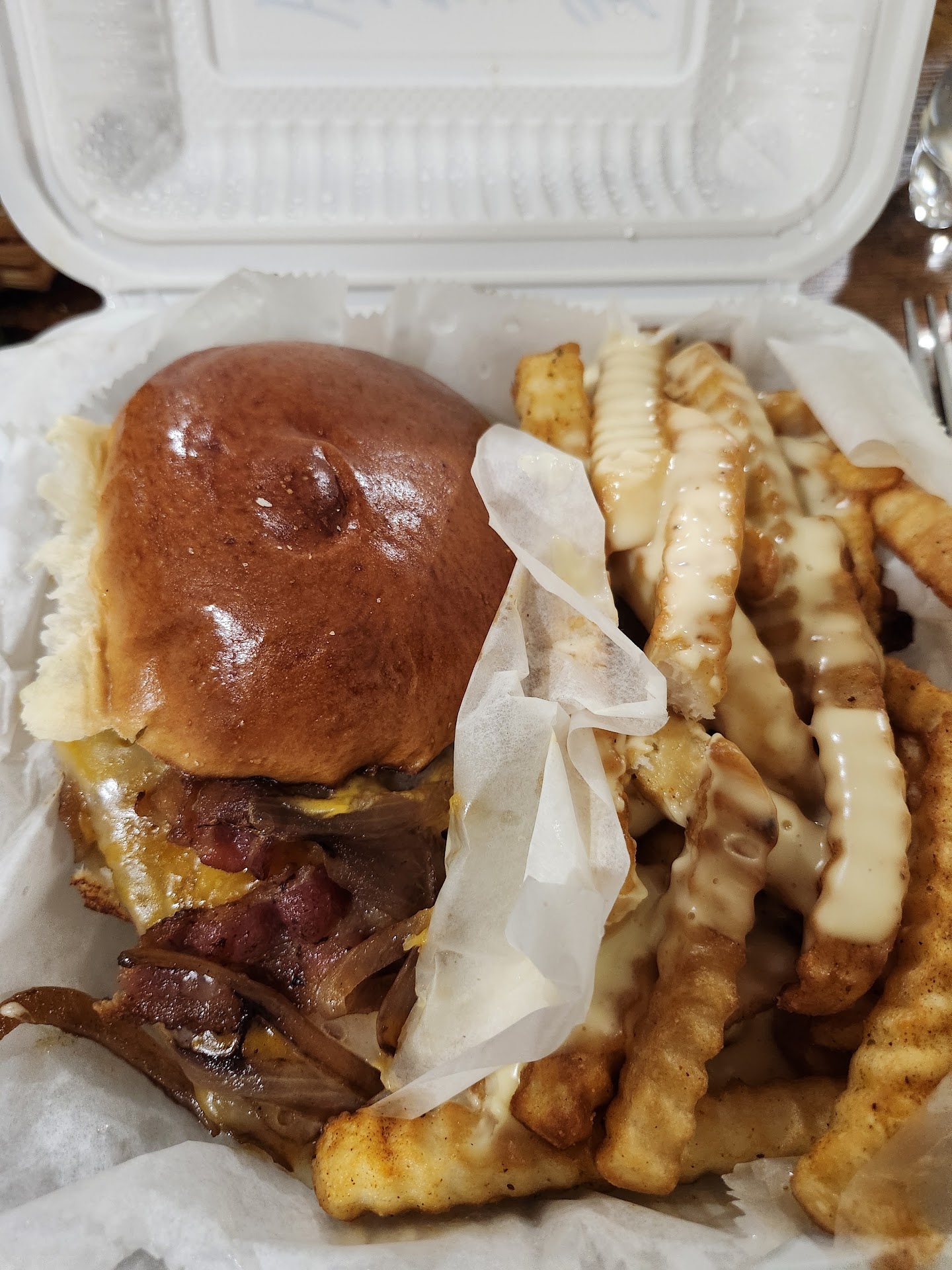 Read more2 BBQ sandwiches, a very small amount of French fries, 3-4 ounces of pork and beans, 8 ounces of chili, a 16 ounce coke and a 16 ounce ginger ale cost $30.00, but that is not even what this complaint is about. The two ladies working the counter were rude. Not this time, or even this time AND the last time, but all 6 times I have gone there the blonde lady (especially) and the dark haired lady were both rude. I asked the blonde haired lady for condiments and she said she would not give me any and that they were in the bag. That’s exactly what she said the last time. They weren’t in the bag then either. I will not ever be back in there again. Ever! The BBQ pork was kind of okay, but that meal should not have cost $30, the people should not have been rude, and when I went in to complain, they should not have gotten an attitude. They suck. And the food was cold. When I went in to get the ketchup they were (get this) pissed at me. I did not have the choice of dining in. In hindsight, I am glad I did not. I was helping a friend who was struggling with limited employment and, although having enough money to pay the bill was not an issue for me, I feel almost certain that this restaurant is not for people who want average food, served hot, and at a reasonable price by people who will at least be tolerant of their customers if not actually happy...