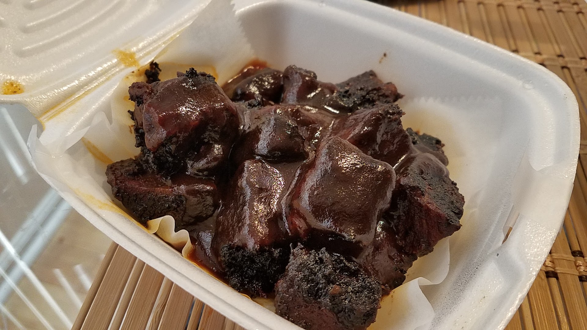 We ordered pork ribs, pulled pork and burnt ends. They were all delicious and served with 2 sauces (hot or mild). The burnt ends were especially delicious. The sides we chose were good, although the mac and cheese was not as good as I would have hoped for.