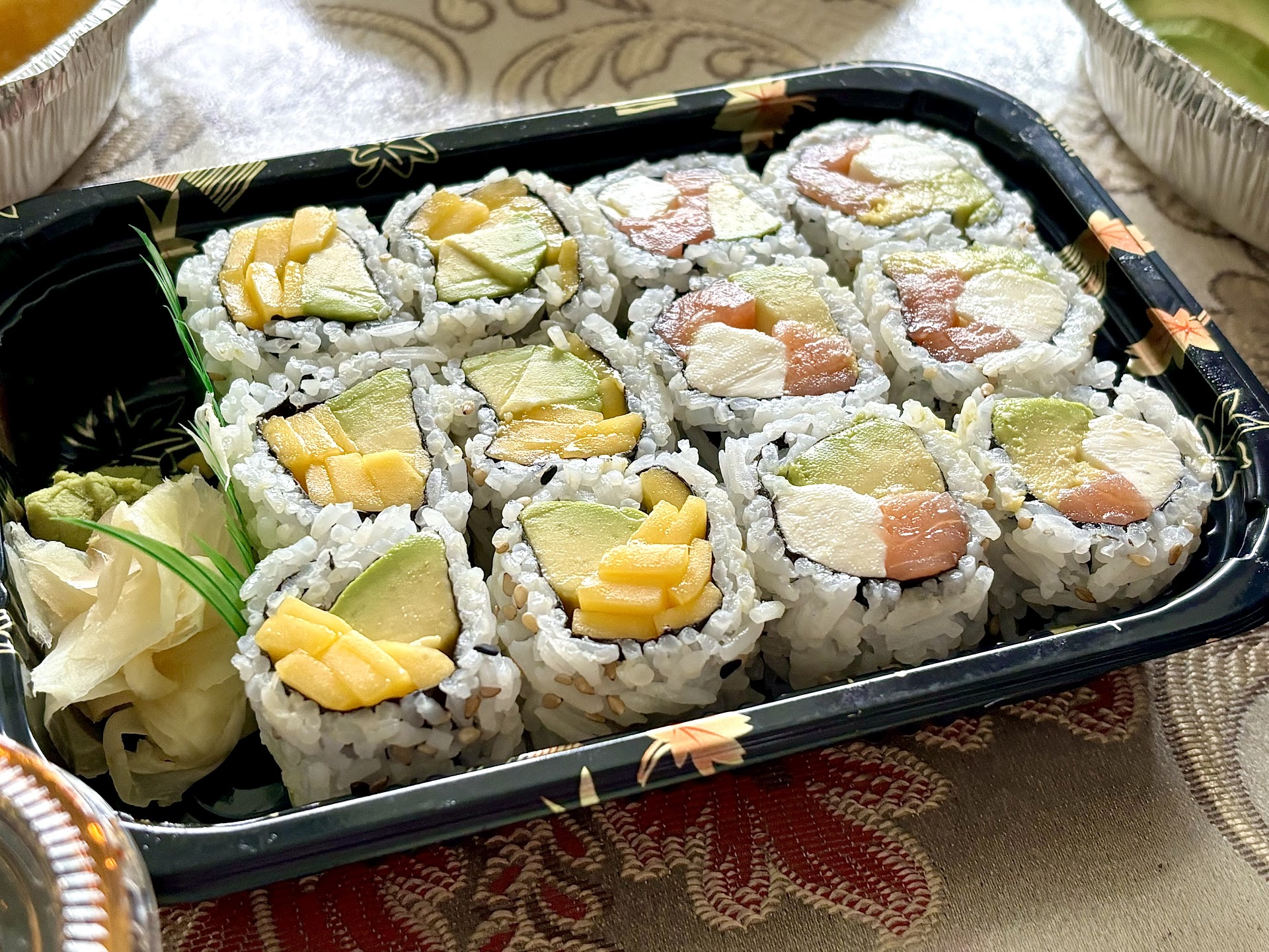 High notes: Crab Rangoon sauce was the best I've ever tasted. They use actual pineapples somewhere in the recipe for it for sure, and the color is a very tame red - this is a good thing in this type of sauce as vibrant reds are usually the result of food coloring. General Tso's Shrimp was so crispy my husband couldn't tell if he was eating the tails or what. The sweet Thai chili sauce they send with the fried calamari is an inspired replacement for cocktail sauce. The chirashi platter had some of the finest presentation I've ever seen, including dine-in chirashi.
