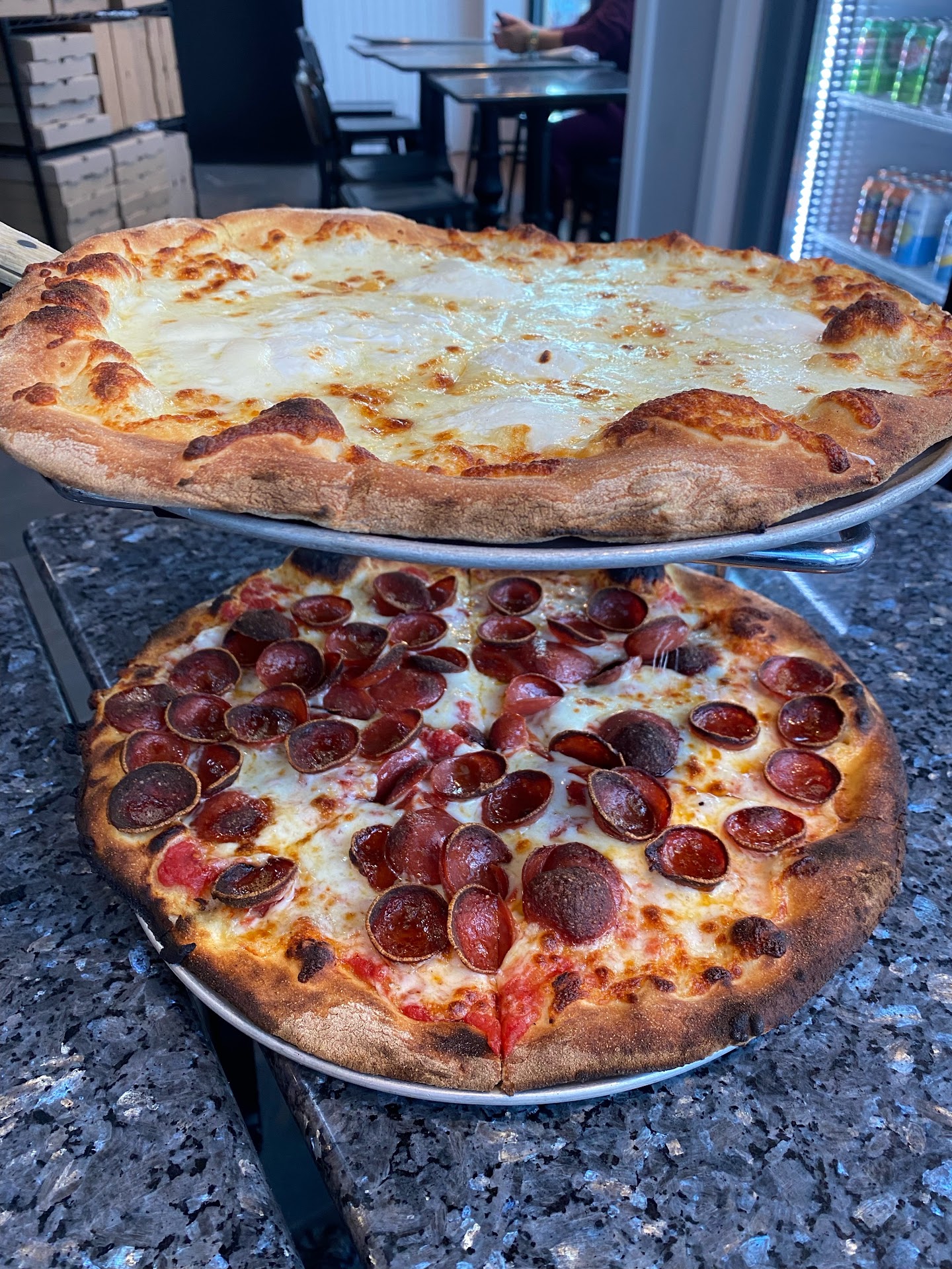 We tried a couple slices of the Burrata and pesto and I wish we just got a whole pie of that. It was genuinely so tasty and I would come just to have that again. Unfortunately the margherita pizza was lacking. The sauce tasted like it was straight from the can and had NO seasoning not even salt. The cheese didnāt vibe well with the texture. I would not recommend it. They even had the cans displayed! I didnāt expect it to be fresh tomatoes cause I know thatās time consuming but no oregano? No onion? No seasoning in the sauce? Itās unfortunate cause I liked the crust and the other...