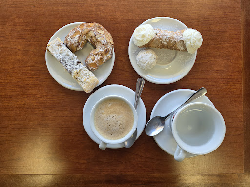 It feels like little Italy here--Italian products for sale, Italian pastry, and Italian older men hanging outside, smoking, and inside--catching up. The espresso and cappuccino are amazing--I always want to order 3 of them, ha! The biscotti is great. The people who work there are nice. It's a great little community bakery. The tiramisu is amazing as are the cannoli. I've gone there for a sweet after dinner at one of the restaurants on Main Street and am always happy.