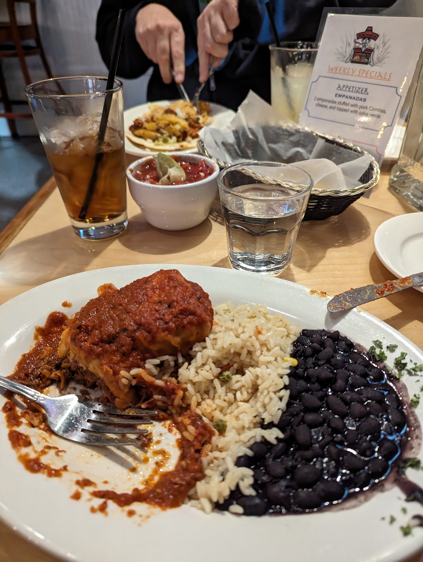 The food offered a wider selection of flavors than other Mexican places I visit. The entre menu seemed complex, but basically each item was the choice of protein/meat and fig each you could choose taco/burrito/chimichanga/bowl. A nice way to present it once you figure it out. I had the mole taco - good but it seemed a little over salted. Someone else at the table said the same ov their al pastor bowl. My wife though the poblano chimichanga was excellent.